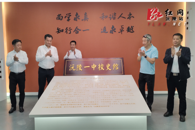 捐赠仪式结束后,汪建与高29届校友代表们一同参观了焕然一新的沅陵一中校史馆、生物展馆和正在紧锣密鼓施工中的体育场建设现场,刘向阳、易中华、汪建一起为沅陵一中校史馆进行揭牌。