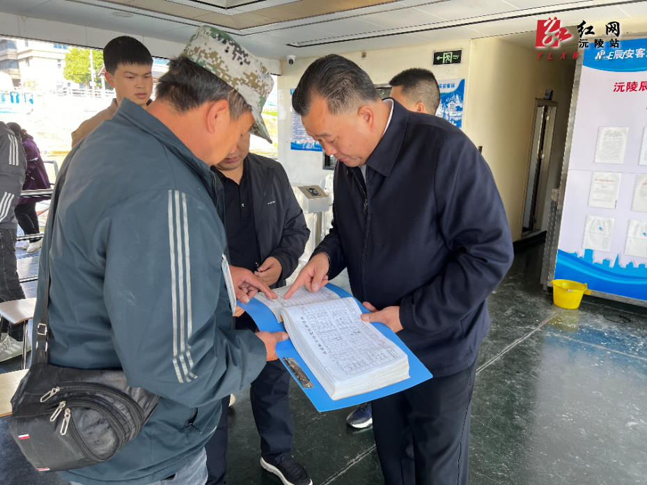 在沅陵港码头,刘向阳径直走向签单发航窗口和码头登船点等关键岗位,现场仔细核查了船舶“六不发航”制度的执行记录、船员的资质备案材料、救生消防设备的配备与完好状况,以及码头安全管理人员的到岗履职情况。详细了解他们的日常工作流程、安全培训情况。