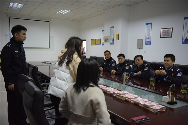 12月4日下午,沅陵县公安局侦查中心民警来到某科技有限公司,将被追回的38万元现金交还给公司主要负责人。