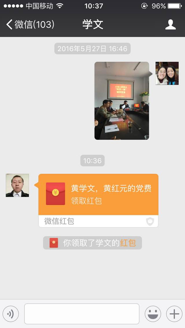 “鹿鸣溪村有很多像黄学文一样常年在外务工的党员,如果让他们专程回来交党费,会给他们添加许多麻烦。”李玉萍介绍道,“以前每年党费缴纳会有些问题,很多都是村干部先垫付或者家里老人代交,村干部经常来回跑几趟,也收不齐党费。现在微信广泛使用了,我们村干部也要与时俱进,利用微信红包支付,方便在外务工的党员交党费。以后党员再远再忙,交党费都不成问题了。”目前,该支部已有多名党员通过微信支部的方式交了党费。