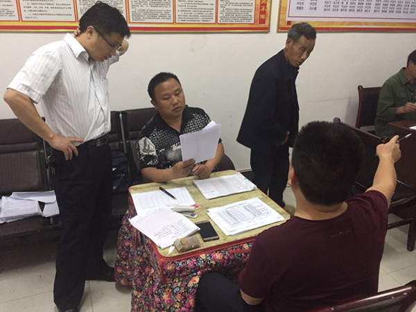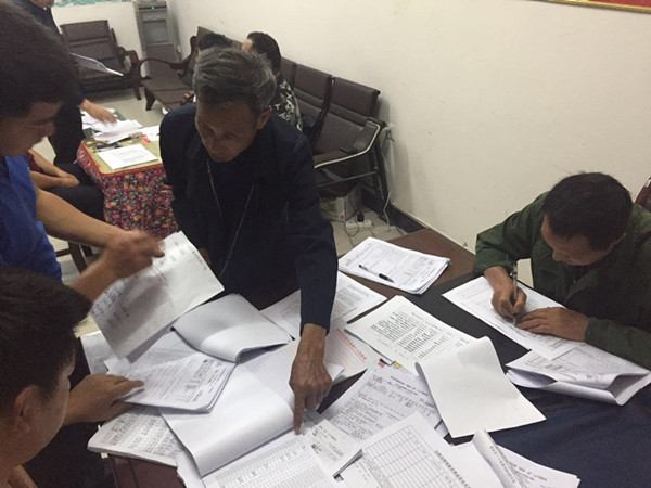 5月23日,离5月25日县脱贫攻坚领导小组要求脱贫攻坚精准识别、精准退出上交农户家庭收入调查表、精准识别拆分户需调整花名册、精准识别错评户需删除花名册、精准识别漏评户需增加花名册、精准脱贫需返贫花名册等五种表格还有2天时间了。各村调查人员不顾多日白天和黑夜、不管风里来雨里去进村入户调查的辛苦,来到乡扶贫工作站咨询政策,如何填写脱贫攻坚精准识别、精准退出四种汇总表,并及时签上自己的大名。