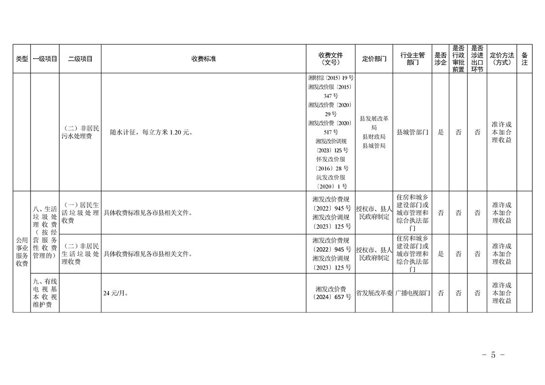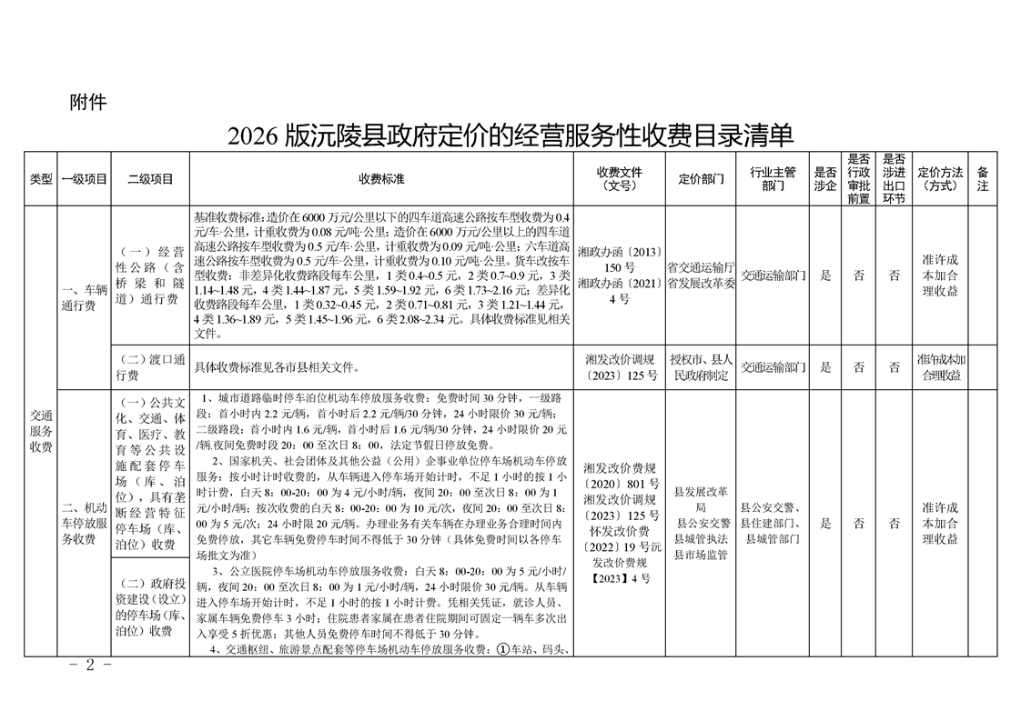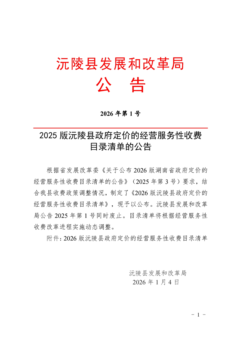 2025版沅陵县政府定价的经营服务性收费目录清单的公告