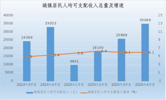 五、居民收入增长态势良好,城乡差距逐步收窄。2025年,全县居民收入实现持续增长,全体居民人均可支配收入达24096元,同比增长7.3%,高于全市平均水平0.8个百分点。分城乡来看,城镇居民人均可支配收入35069元,同比增长6.1%,高于全市1个百分点;农村居民人均可支配收入17413元,同比增长7.4%,高于全市0.5个百分点。农村居民收入增速快于城镇居民2.3个百分点,且城乡收入比为2.01,较去年同期缩小0.03,城乡居民收入差距进一步缩小,为共同富裕目标的实现迈出了坚实步伐。
