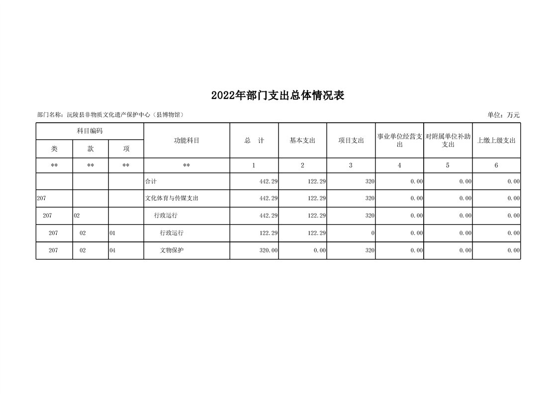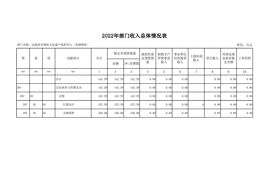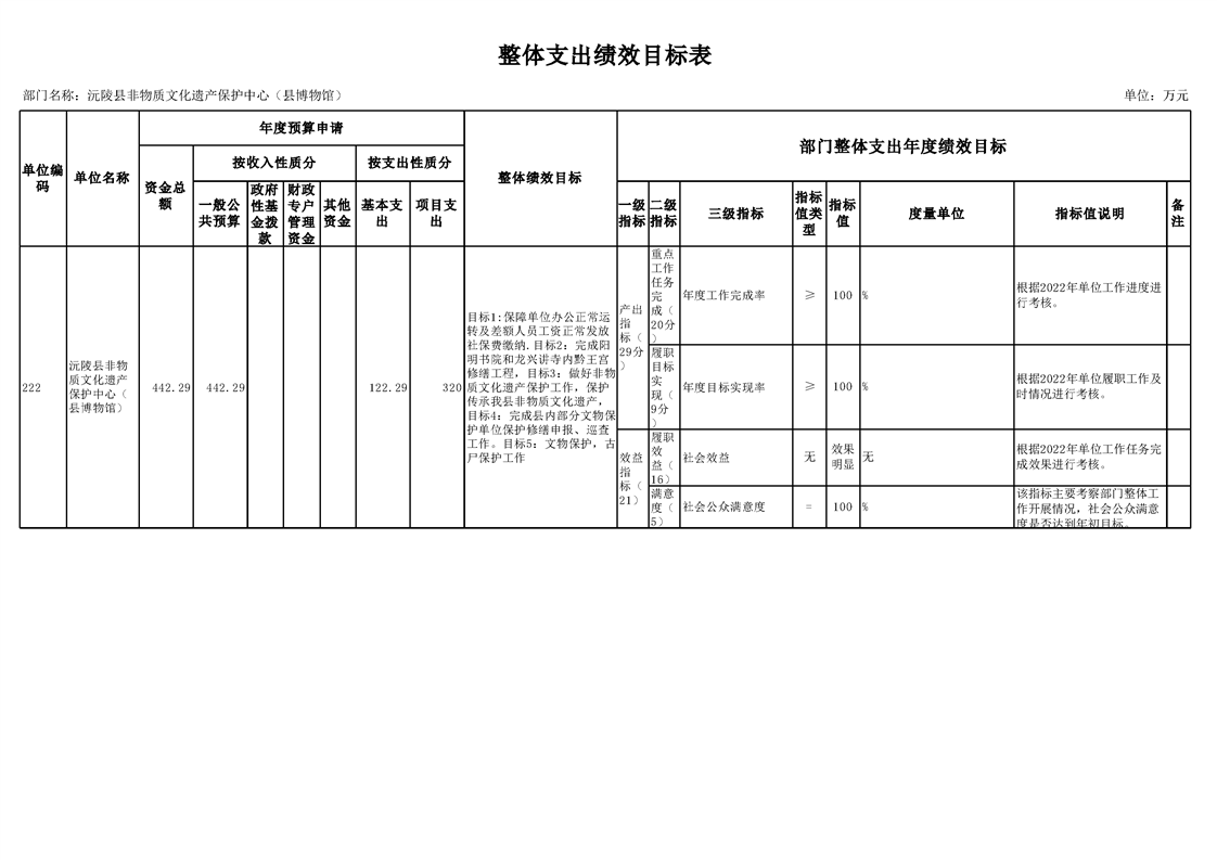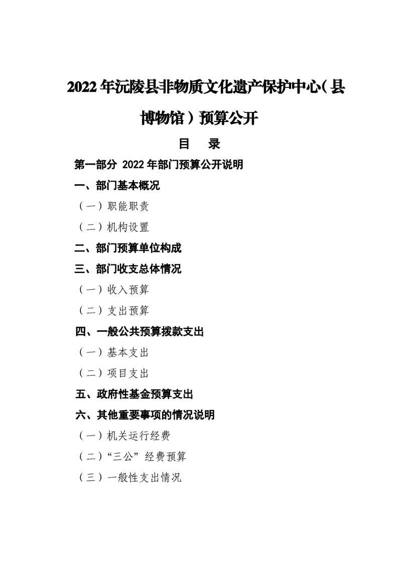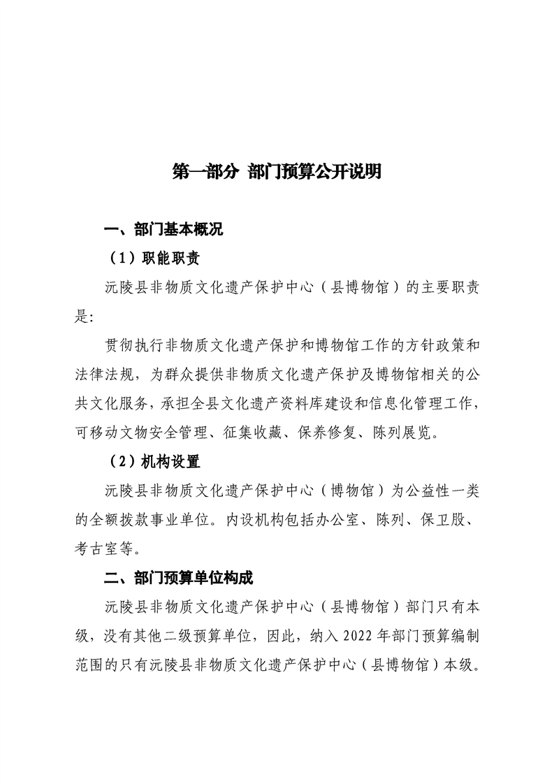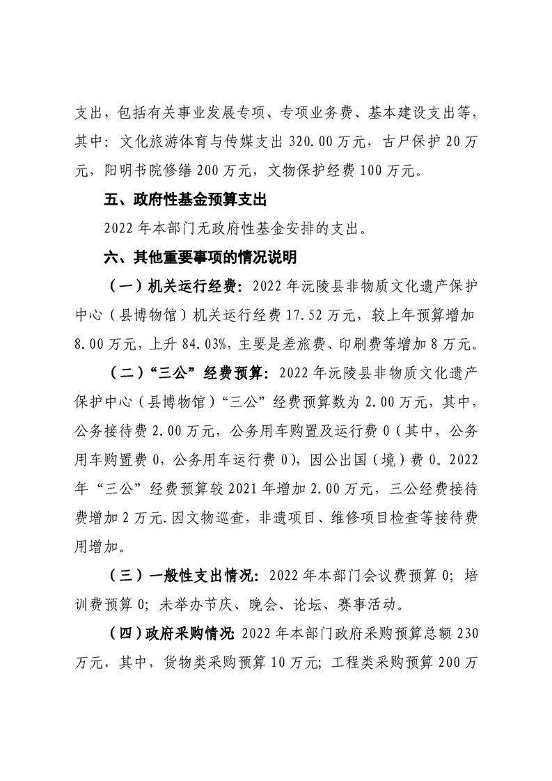 2022年沅陵县非物质文化遗产保护中心(县博物馆)预算公开