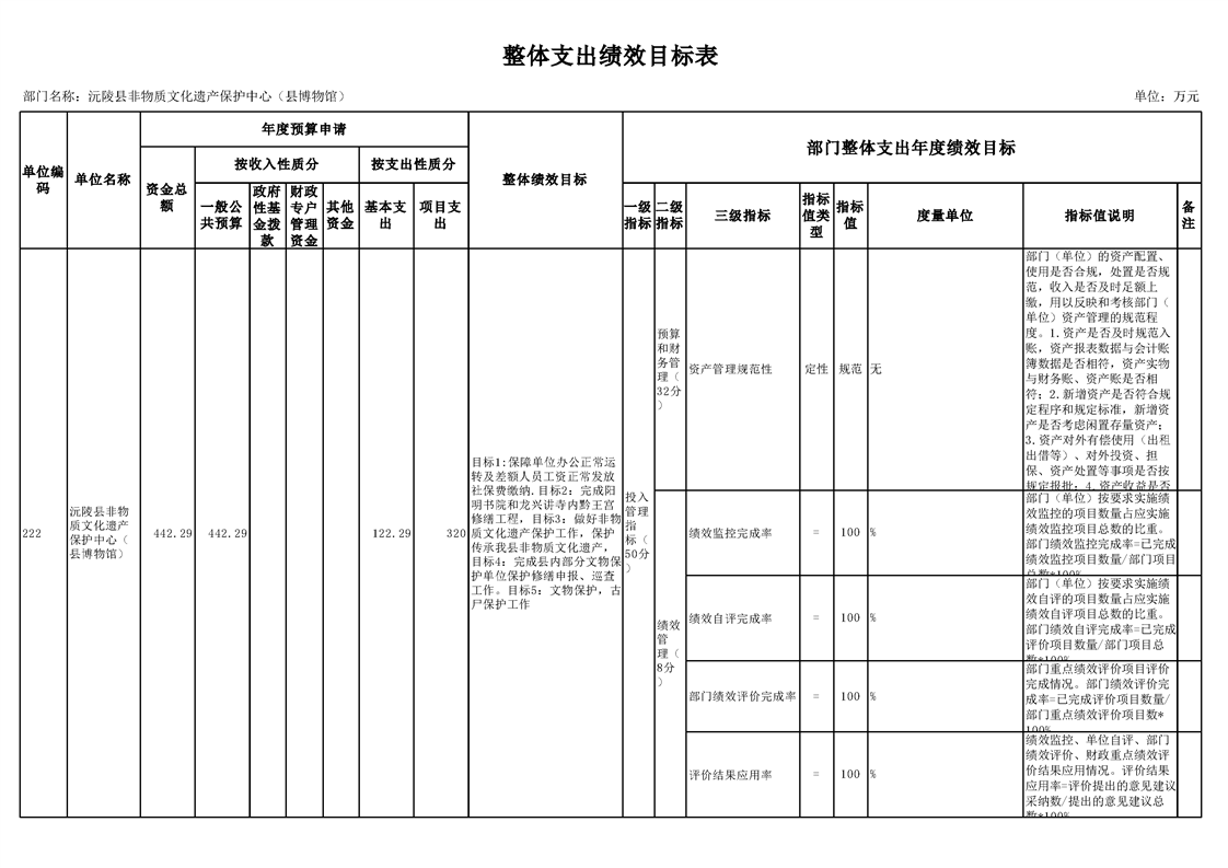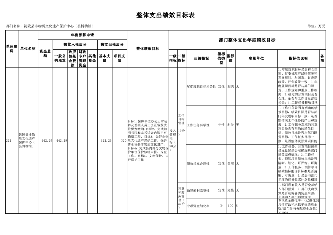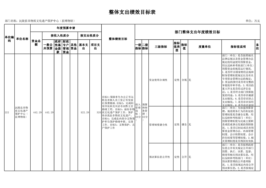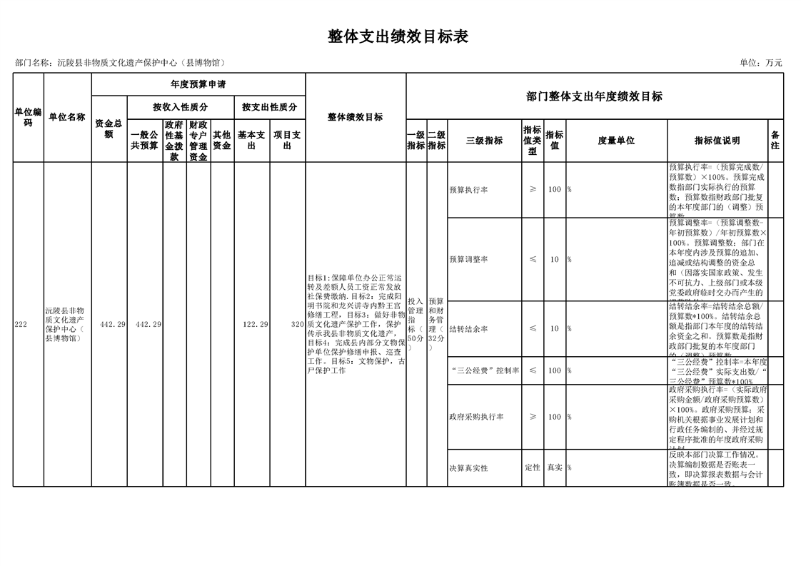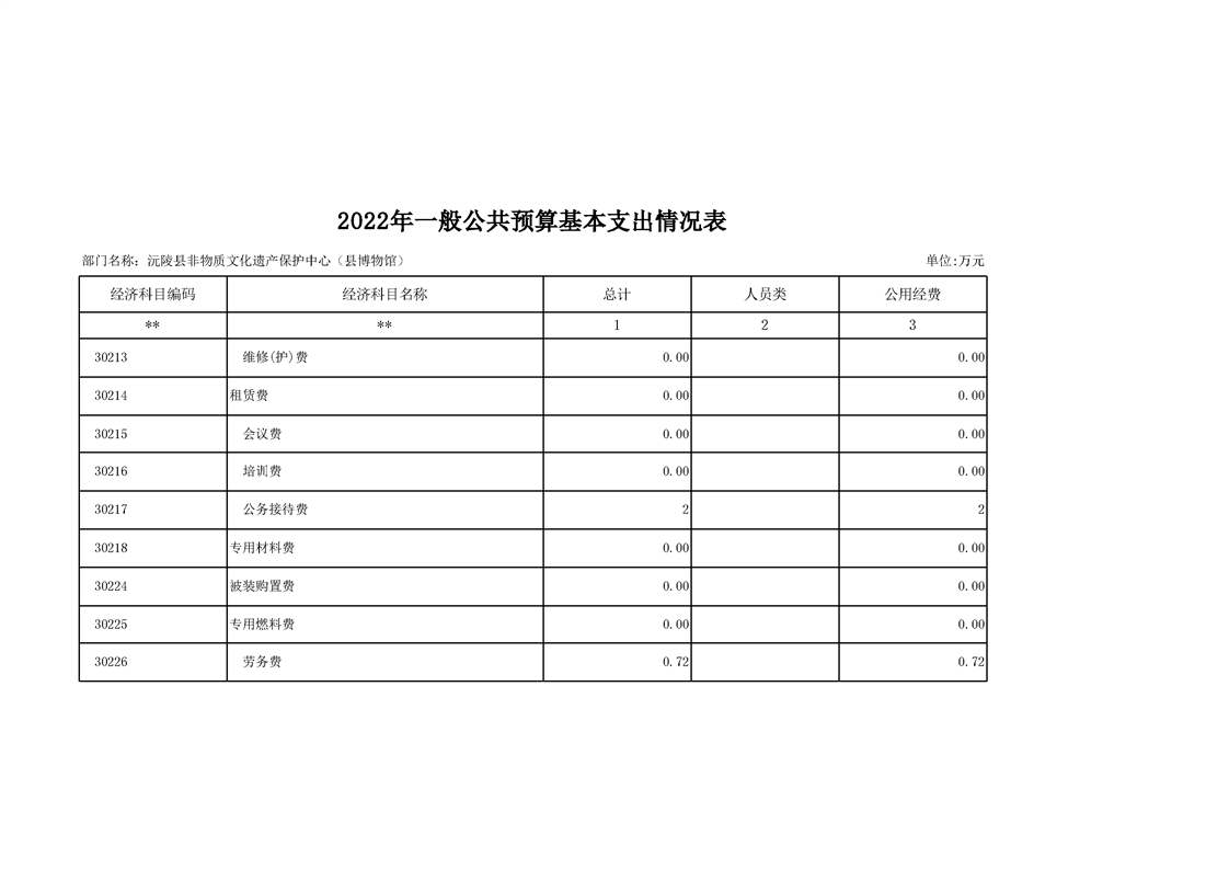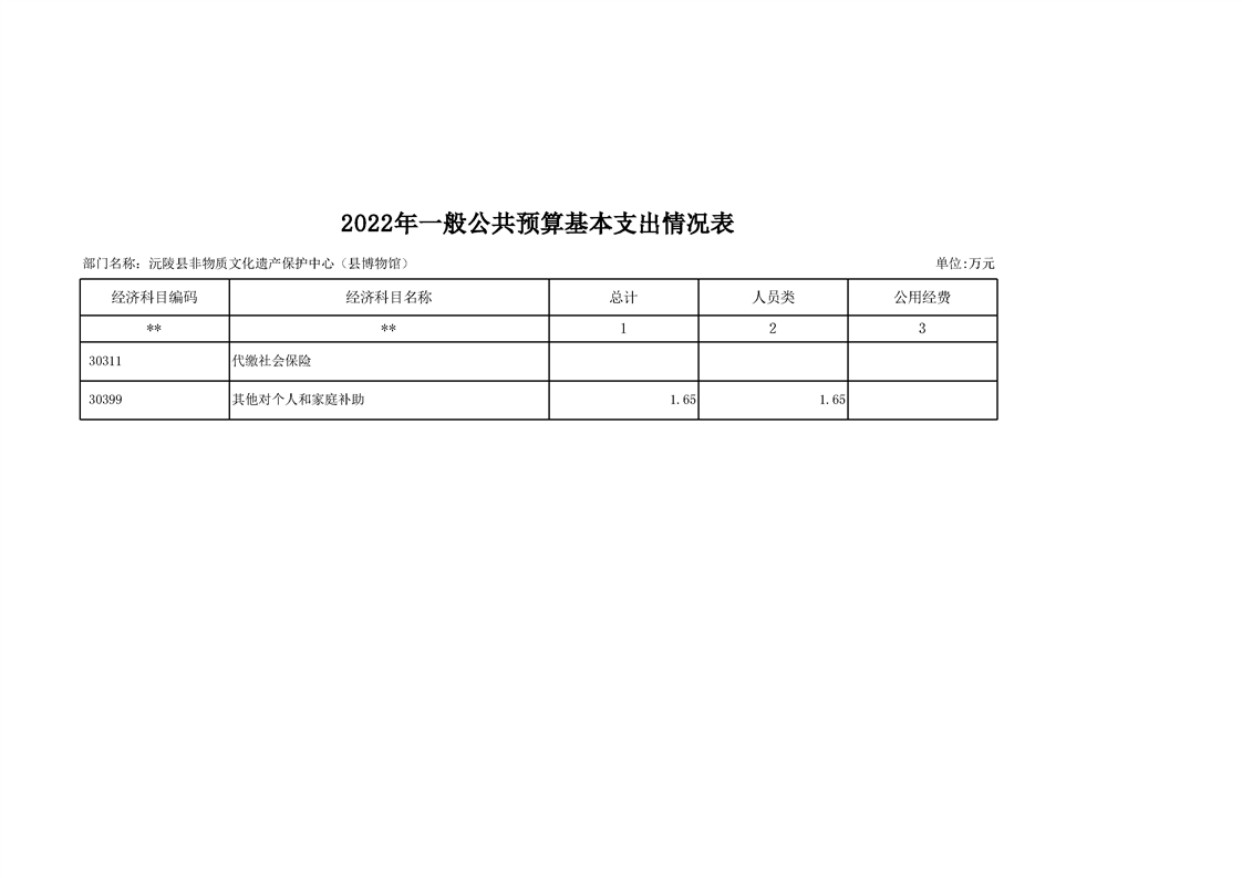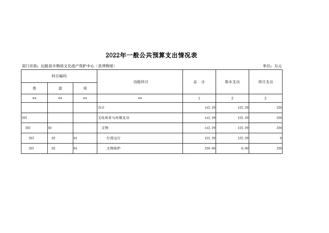 2022年沅陵县非物质文化遗产保护中心(县博物馆)预算公开