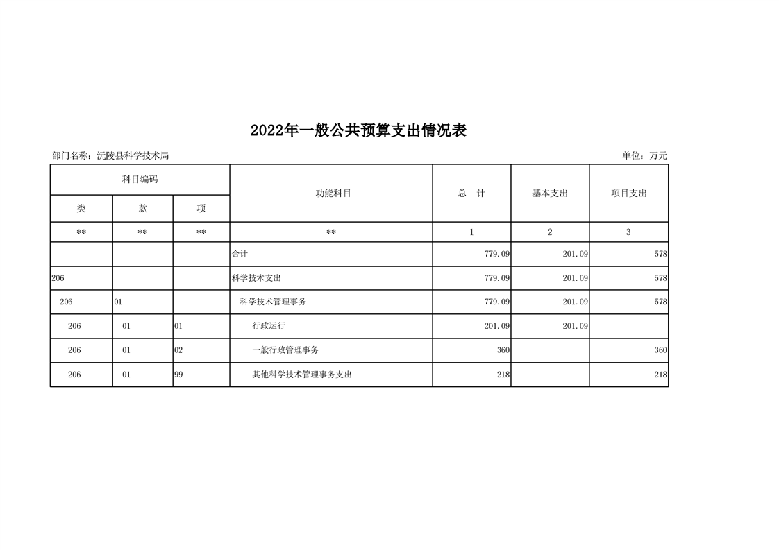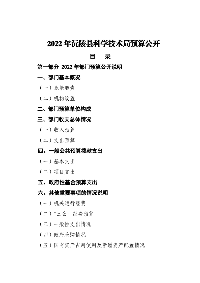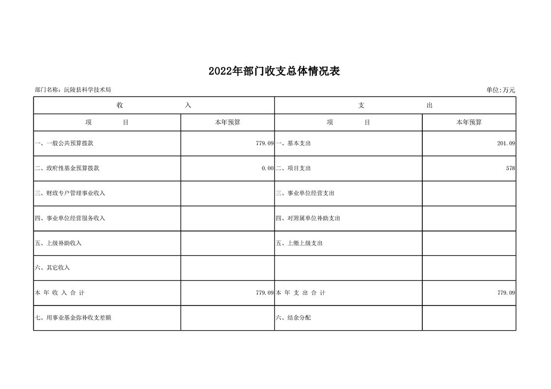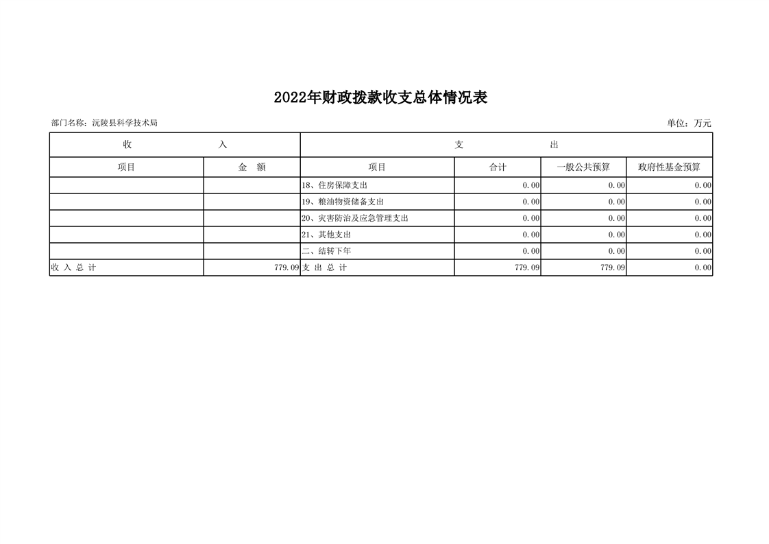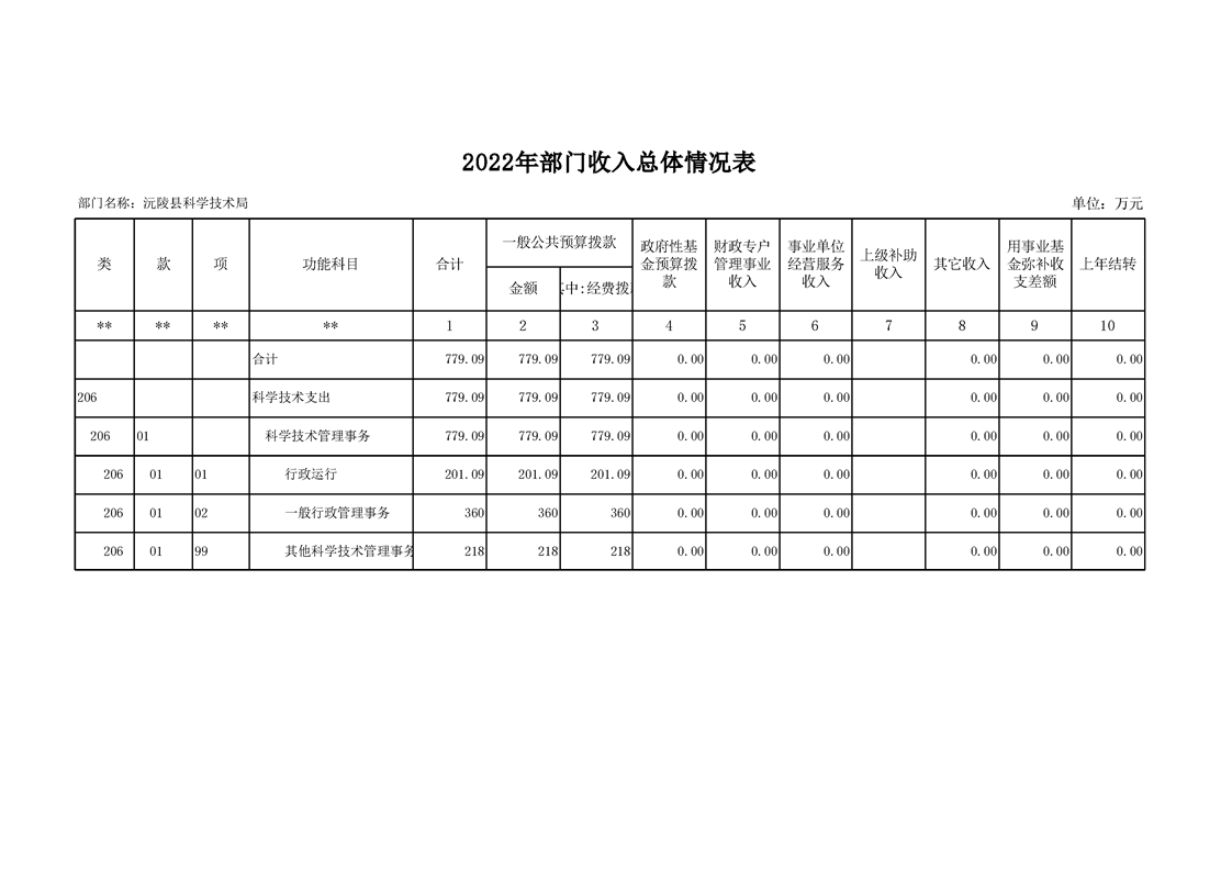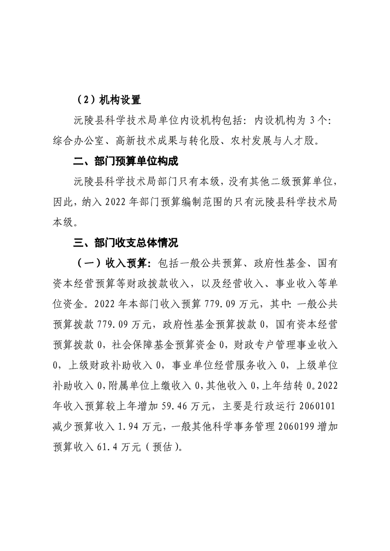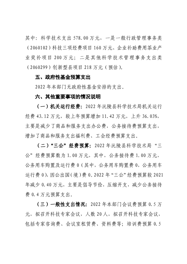 2022年沅陵县科学技术局预算公开