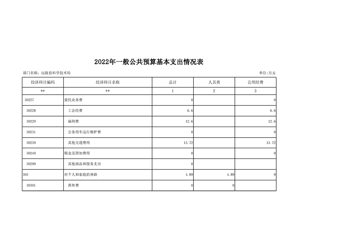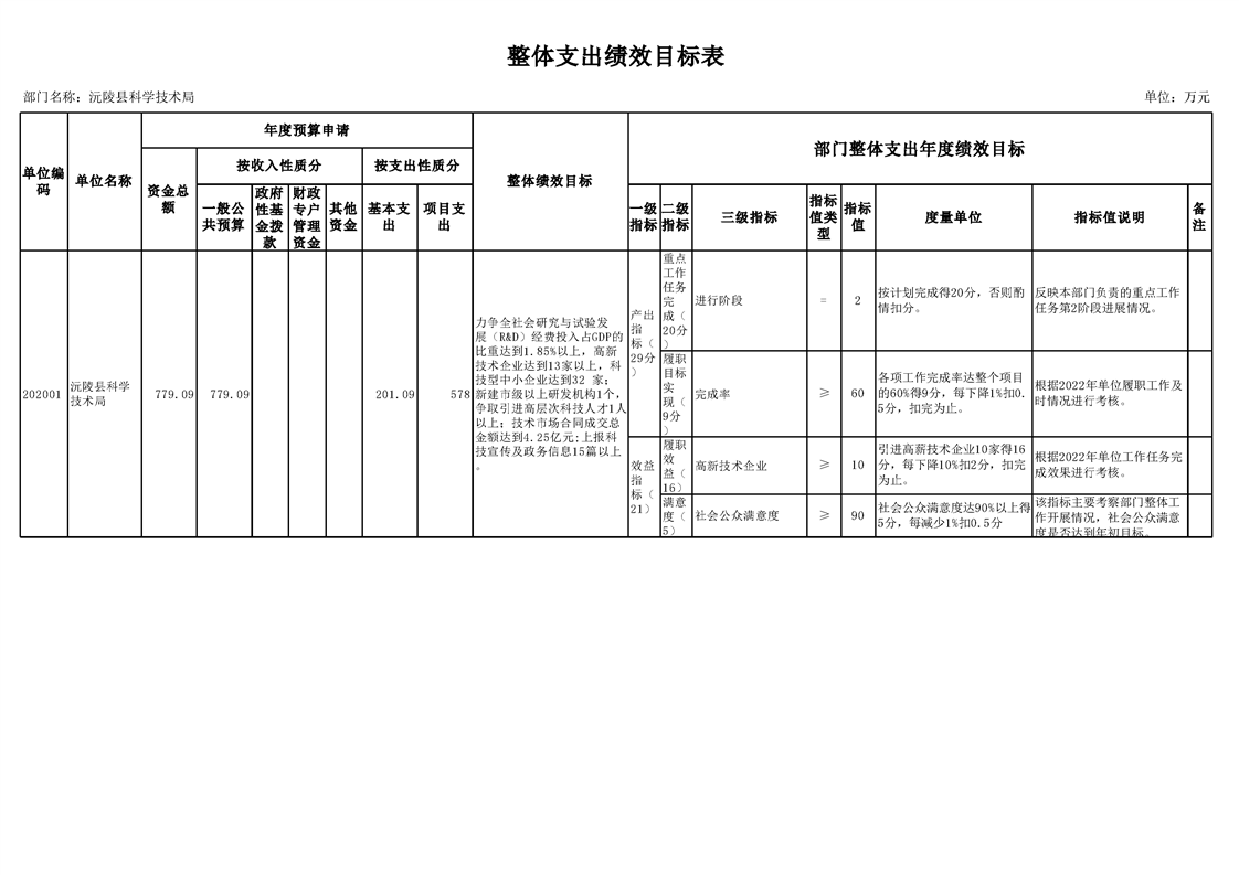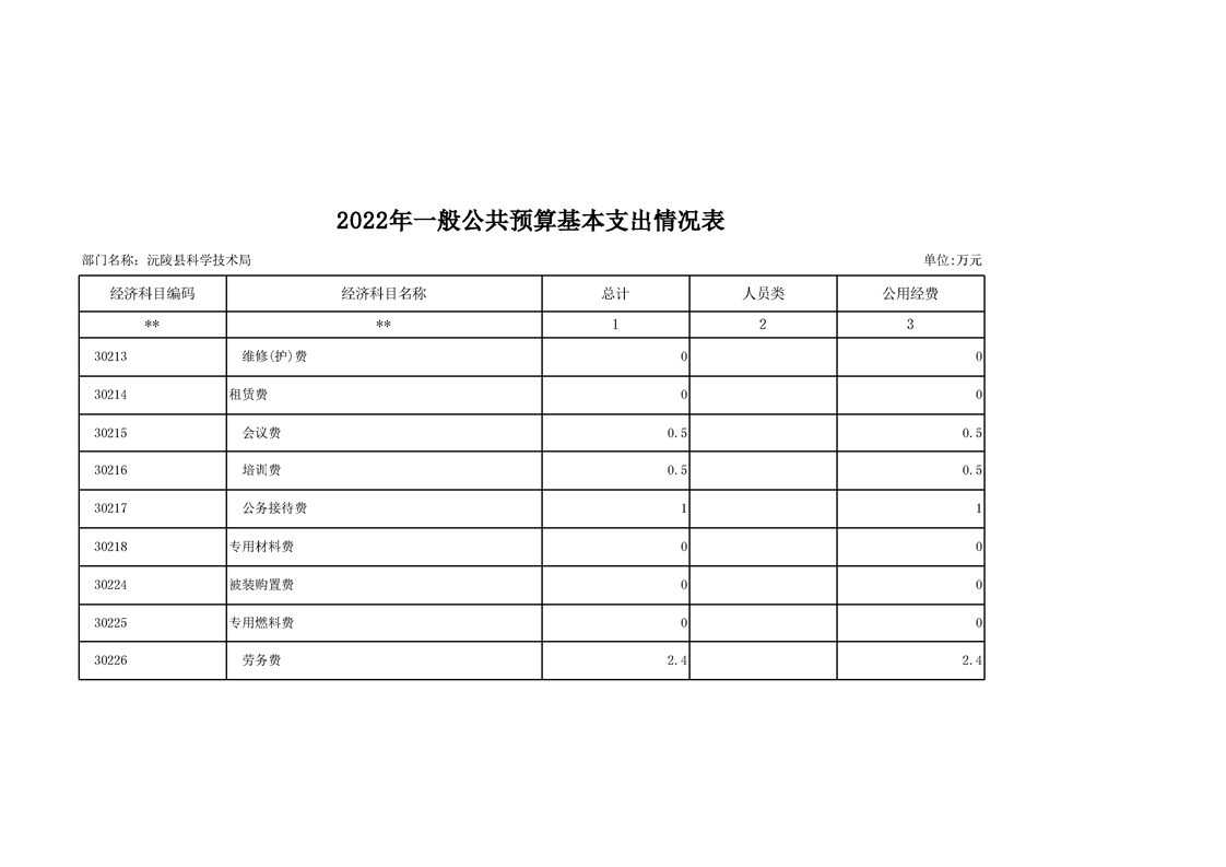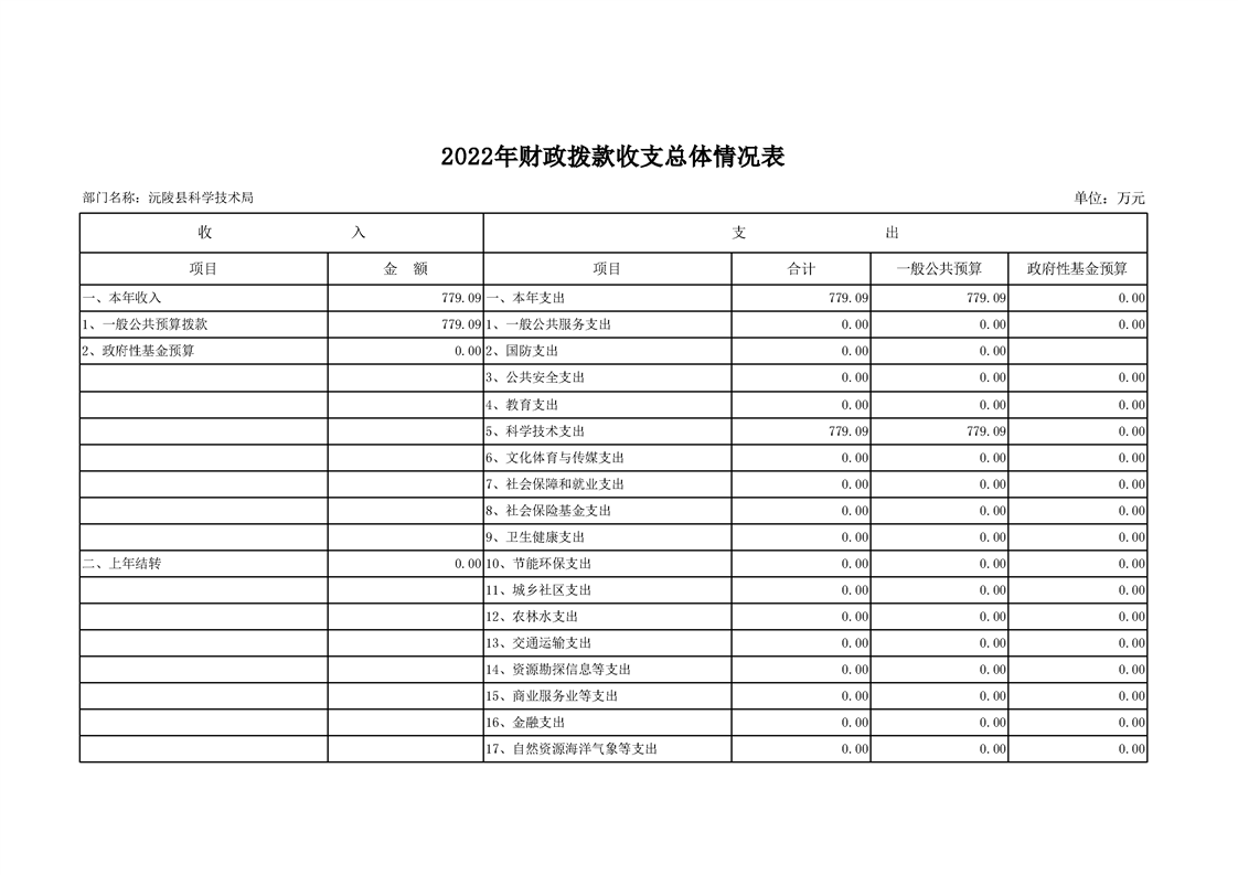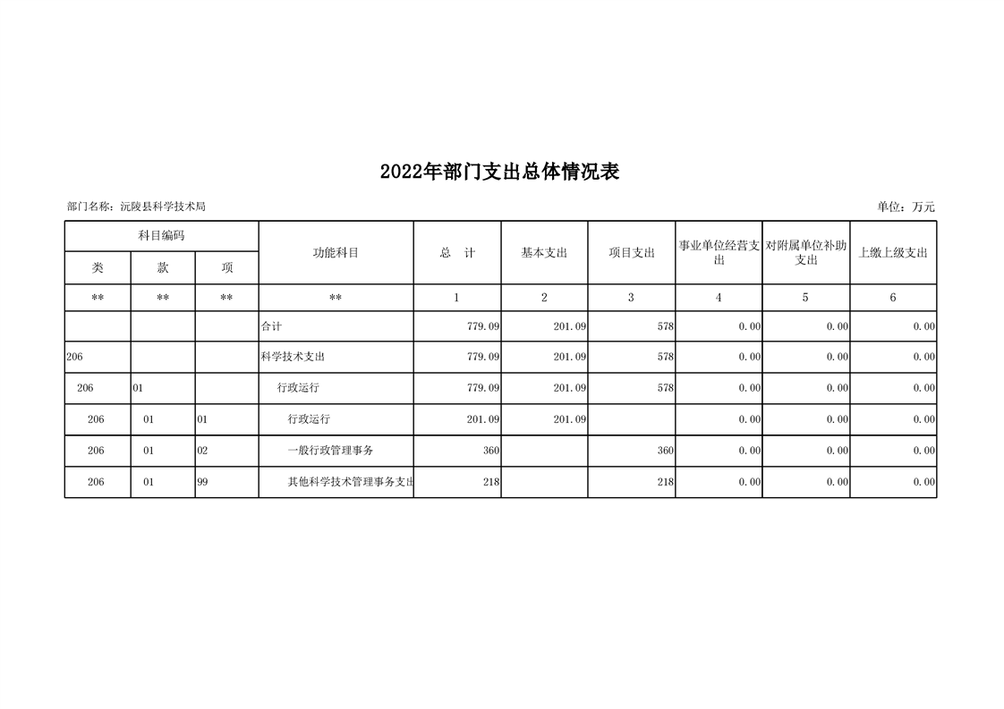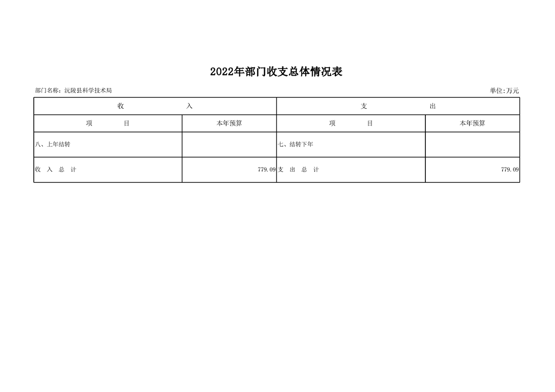 2022年沅陵县科学技术局预算公开