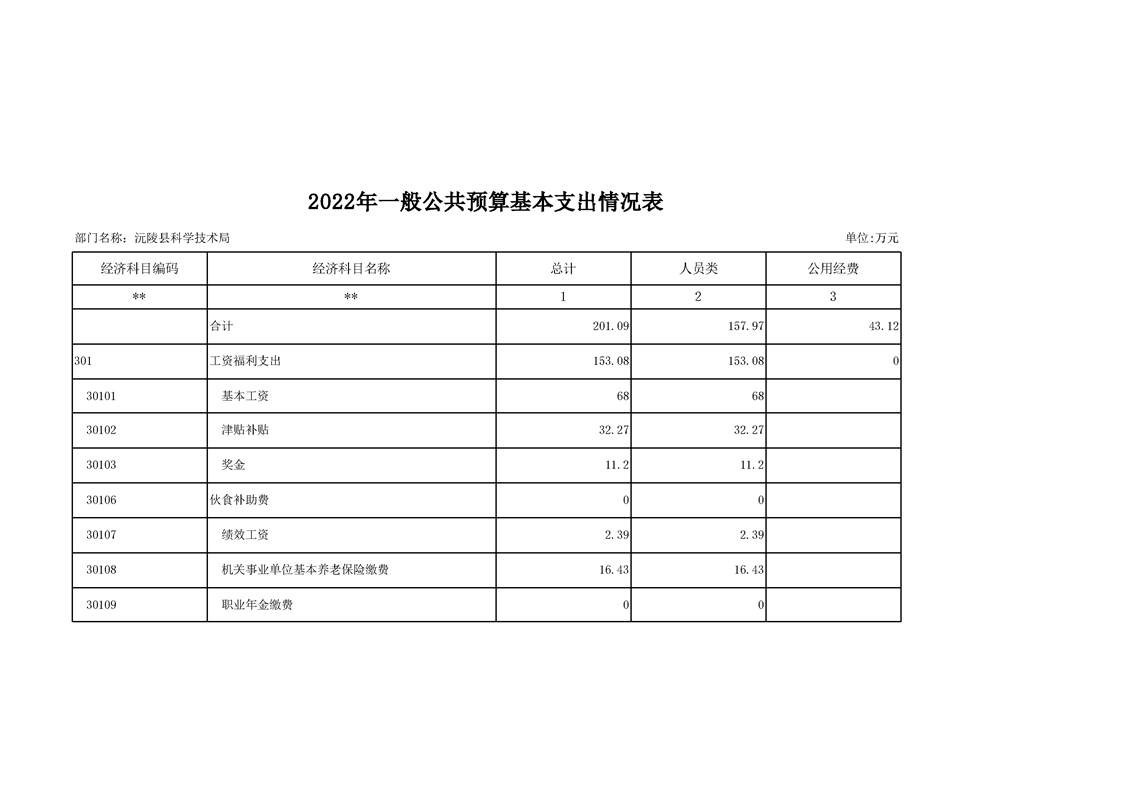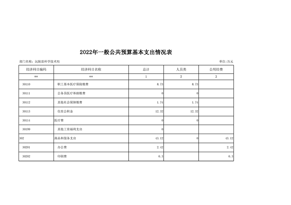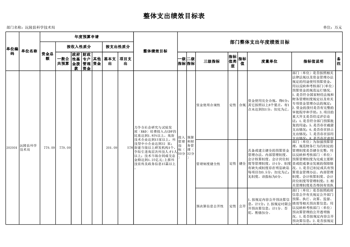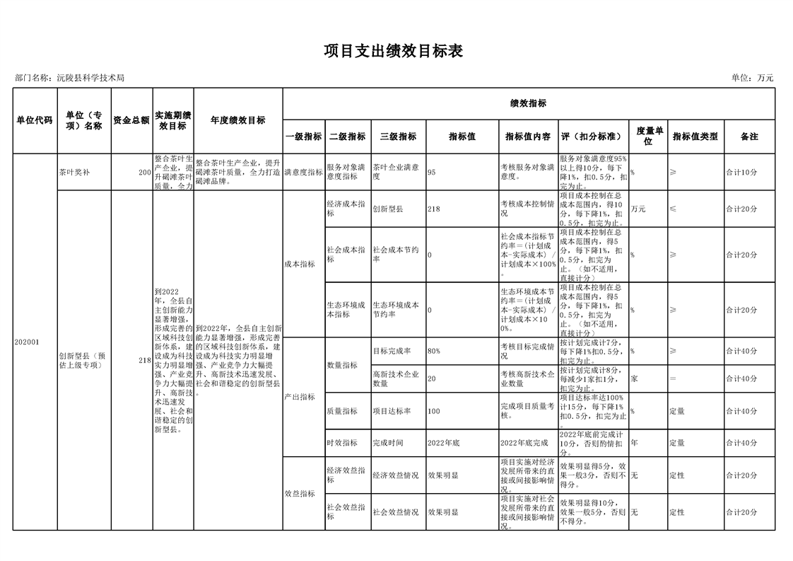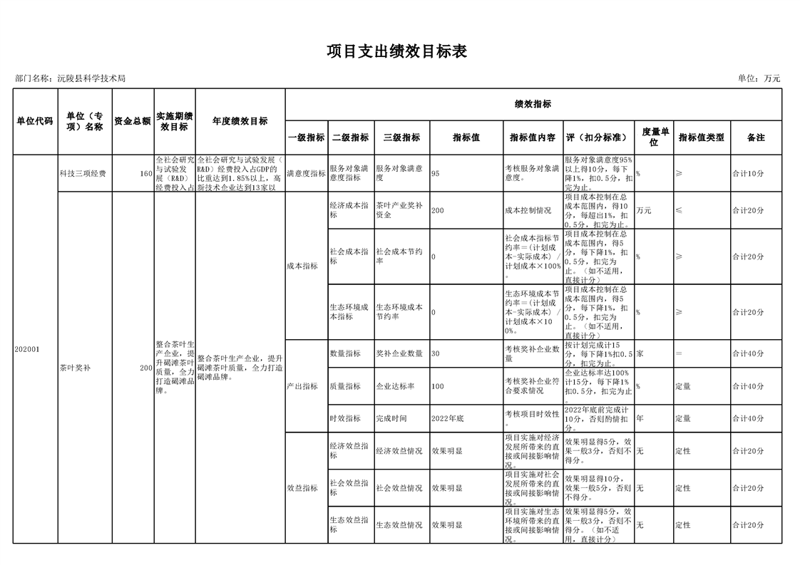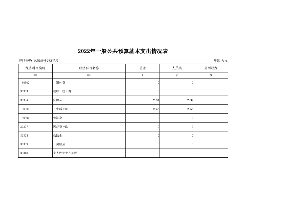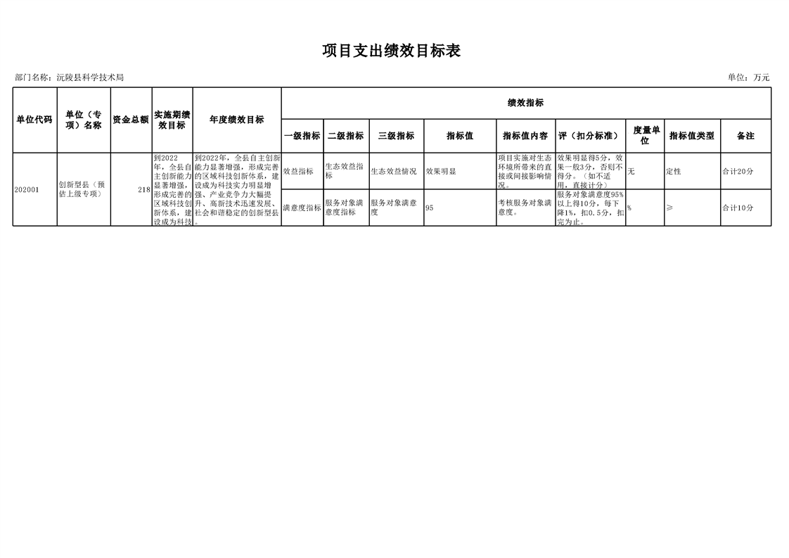 2022年沅陵县科学技术局预算公开