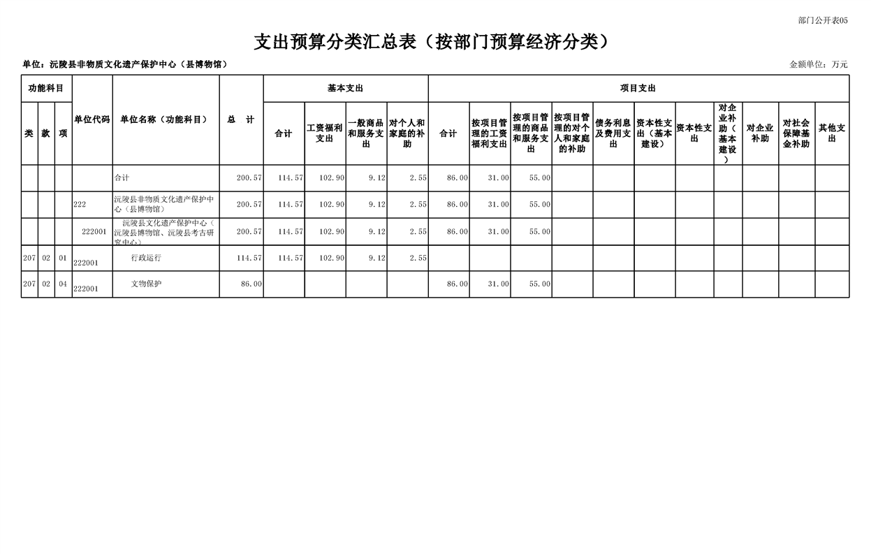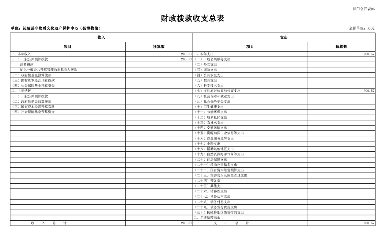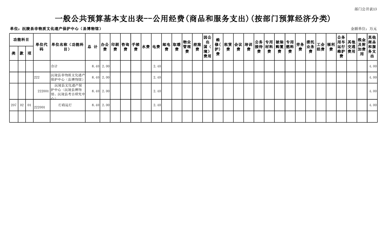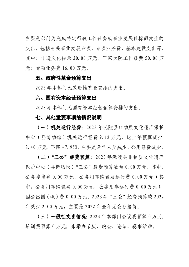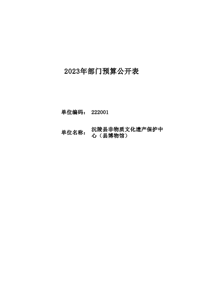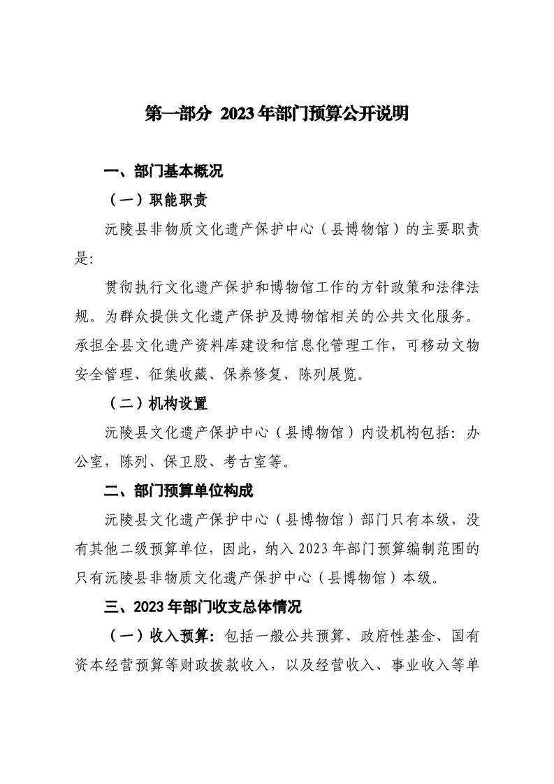 2023年沅陵县非物质文化遗产保护中心(县博物馆)预算公开