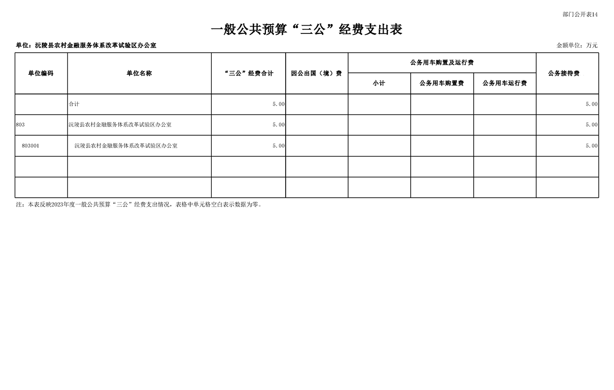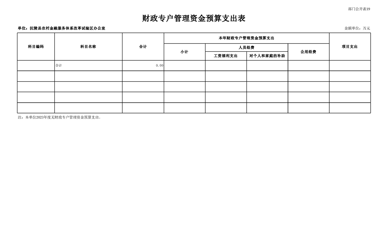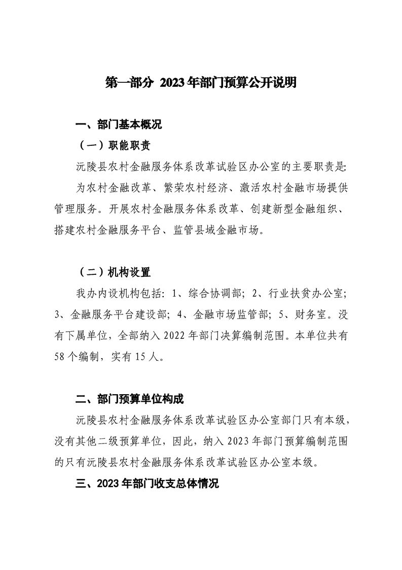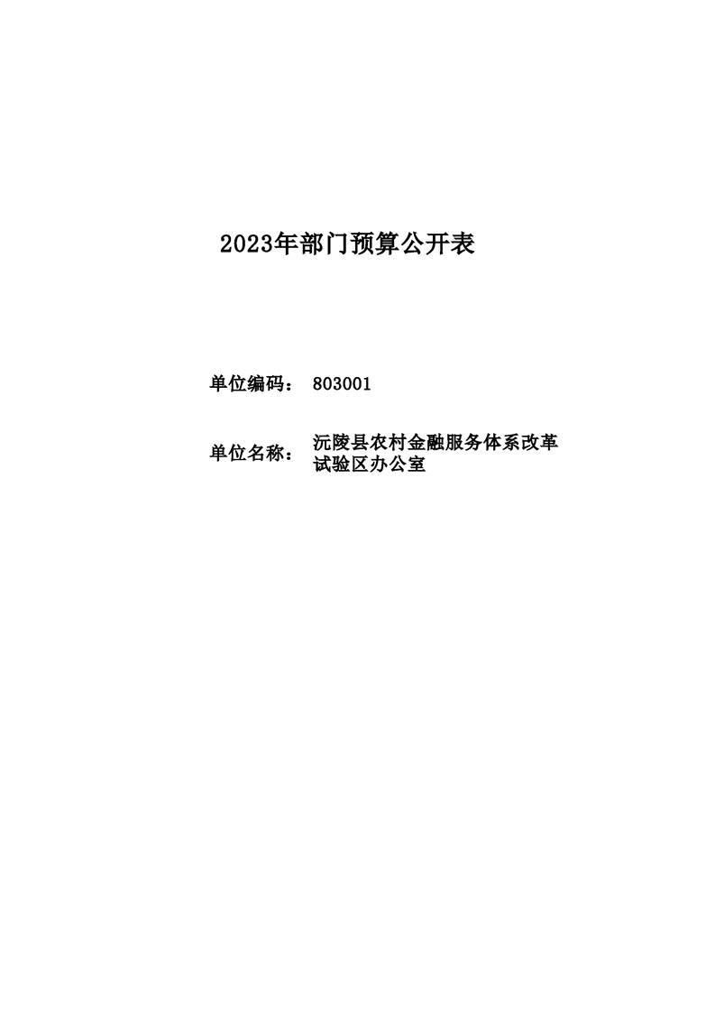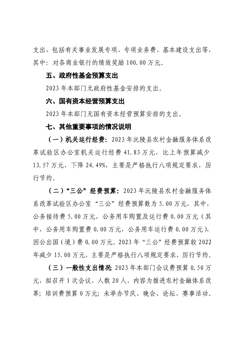 2023年沅陵县农村金融服务体系改革试验区办公室预算公开