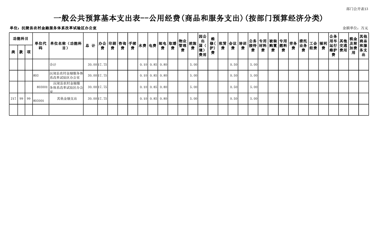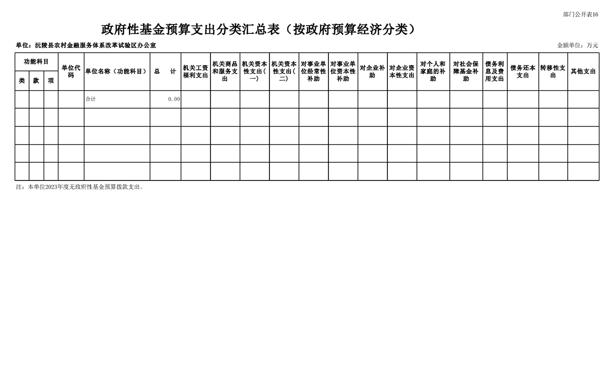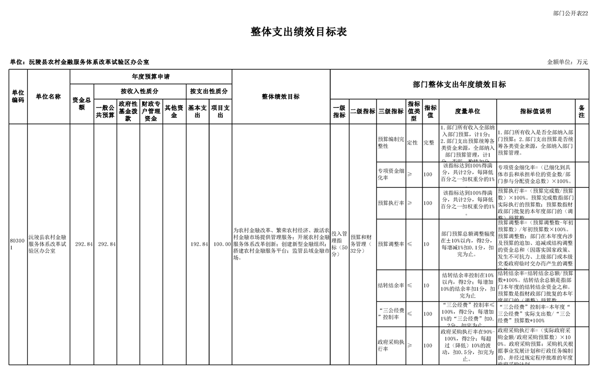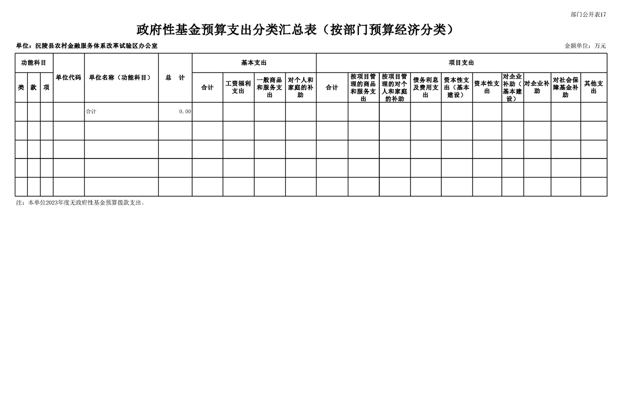 2023年沅陵县农村金融服务体系改革试验区办公室预算公开