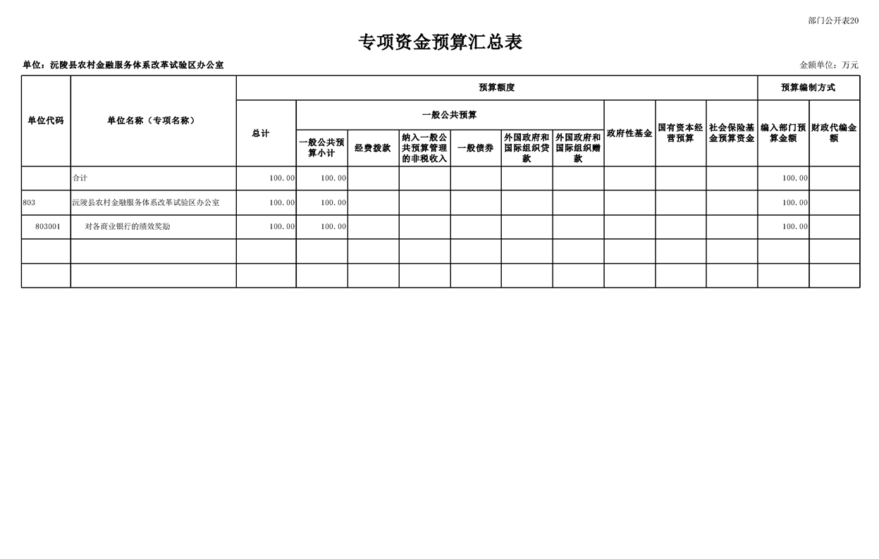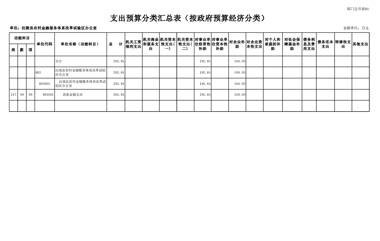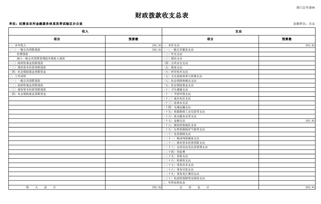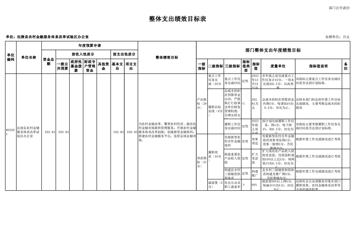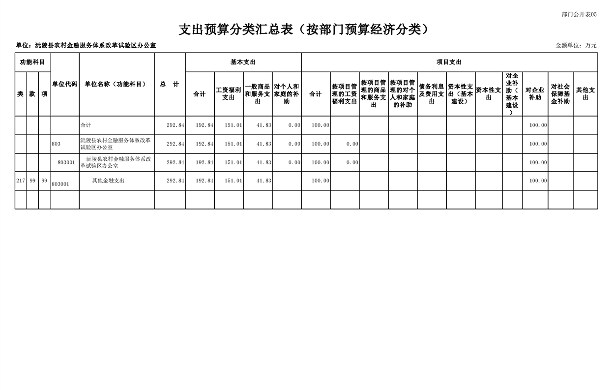 2023年沅陵县农村金融服务体系改革试验区办公室预算公开