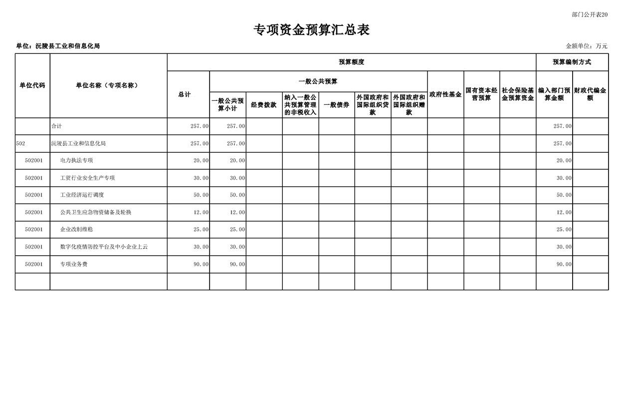 2023年沅陵县工业和信息化局预算公开