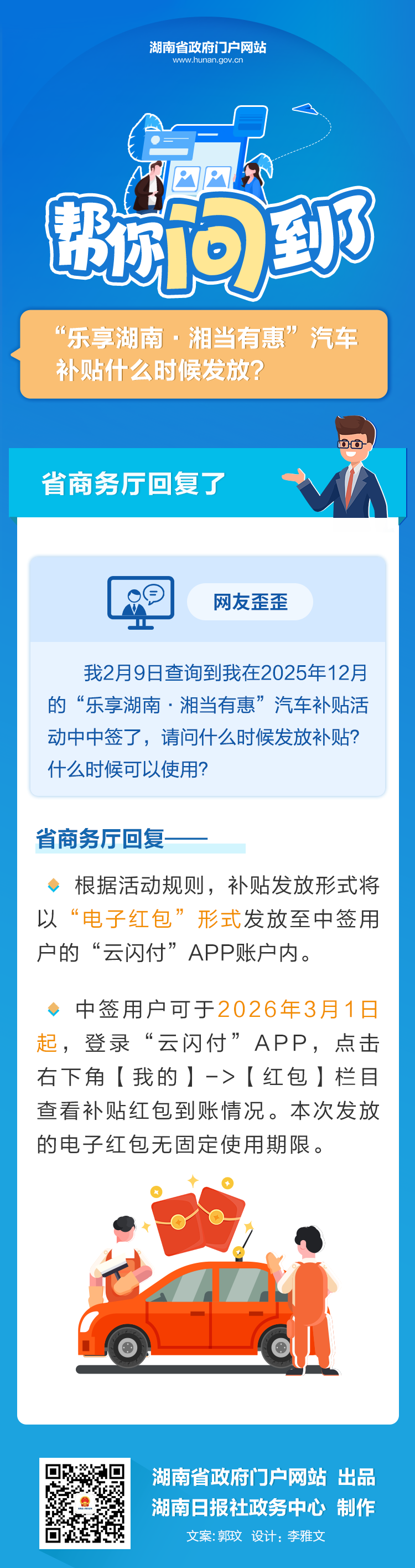 “乐享湖南·湘当有惠”汽车补贴什么时候发放?帮你问到了!