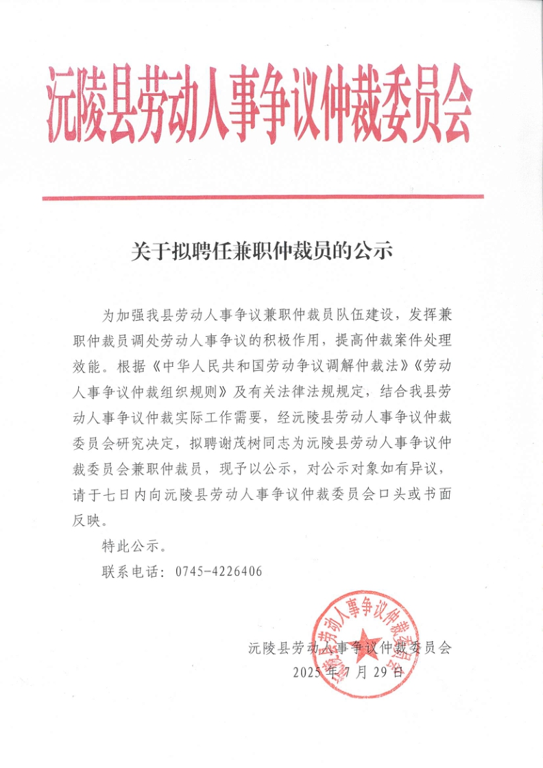关于拟聘任兼职仲裁员的公示