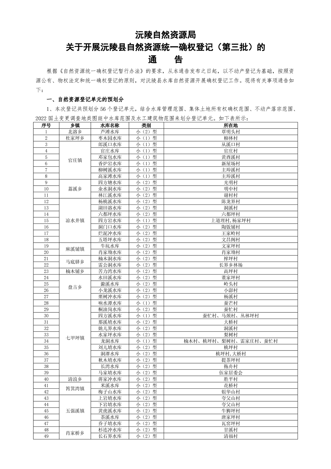 沅陵县自然资源局关于开展沅陵县自然资源统一确权登记第三批的通告