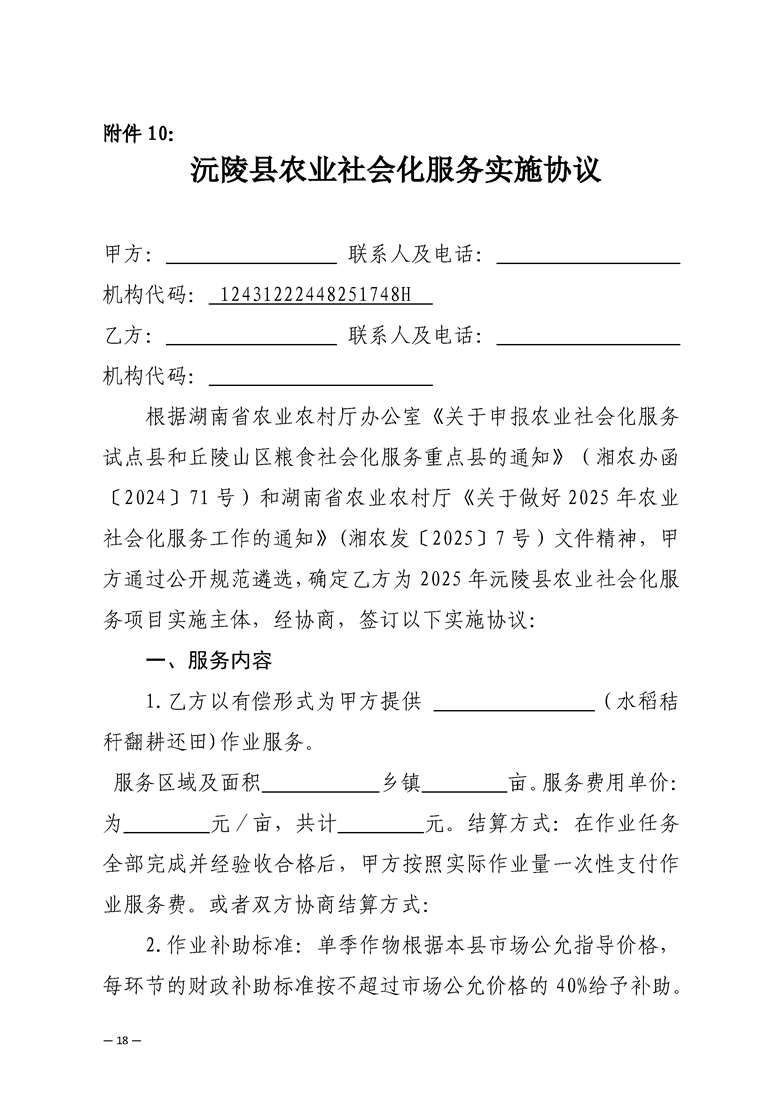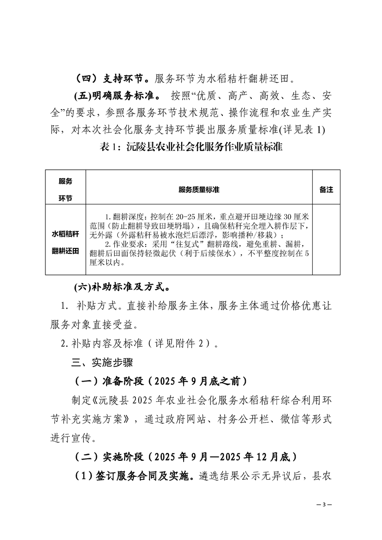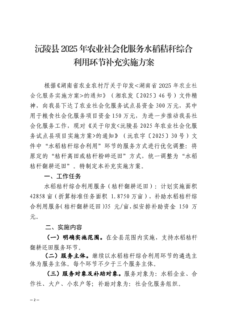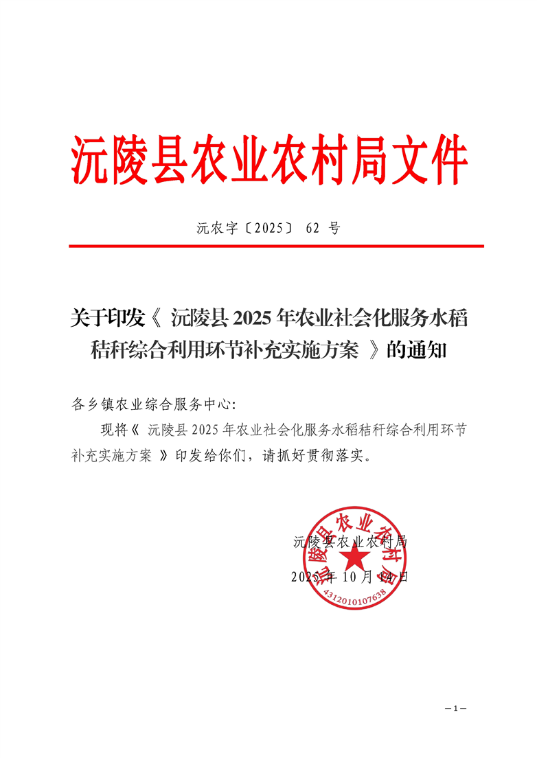 关于印发《沅陵县2025年农业社会化服务水稻秸秆综合利用环节补充实施方案》的通知