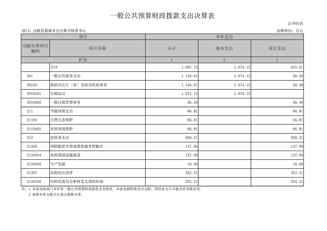 2023年度沅陵县荔溪乡会计集中核算中心部门决算