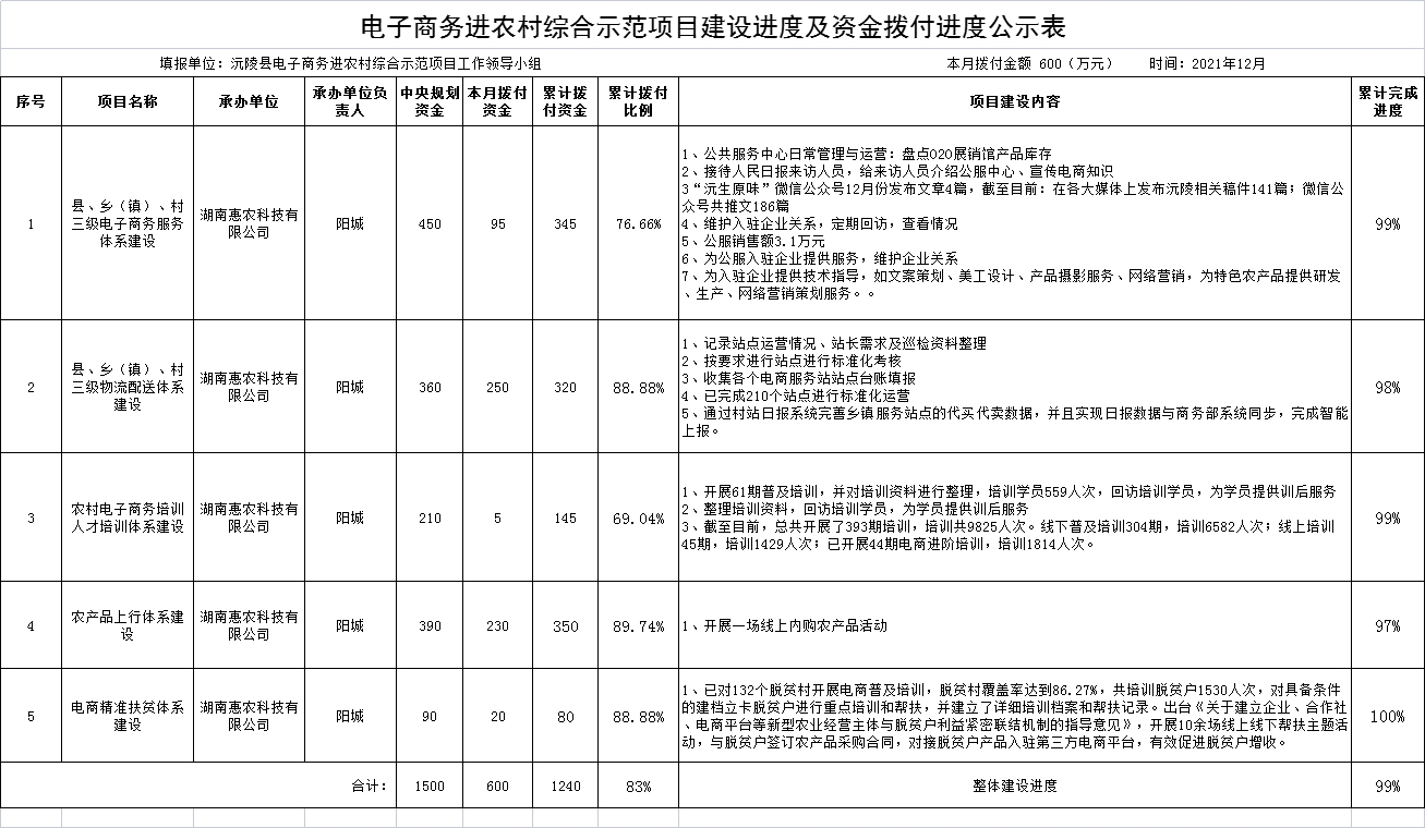 电子商务进农村综合示范项目建设进度及资金拨付进度公示表