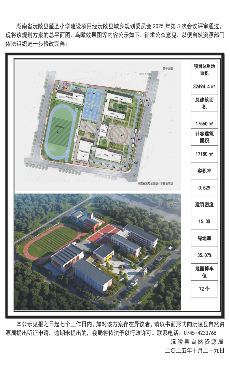湖南省沅陵县望圣小学建设项目规划设计方案批前公示