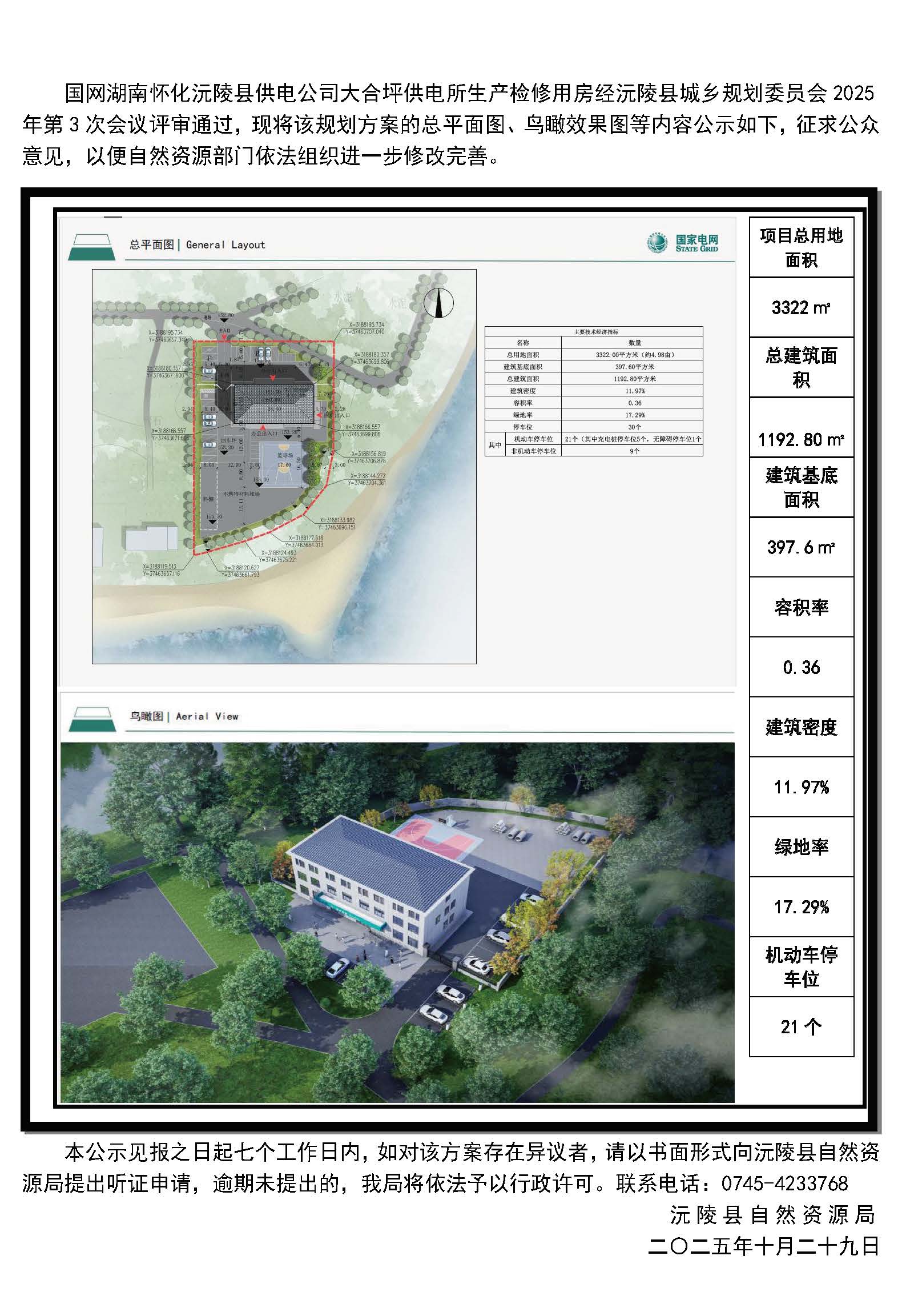 国网湖南怀化沅陵县供电公司大合坪供电所规划设计方案批前公示