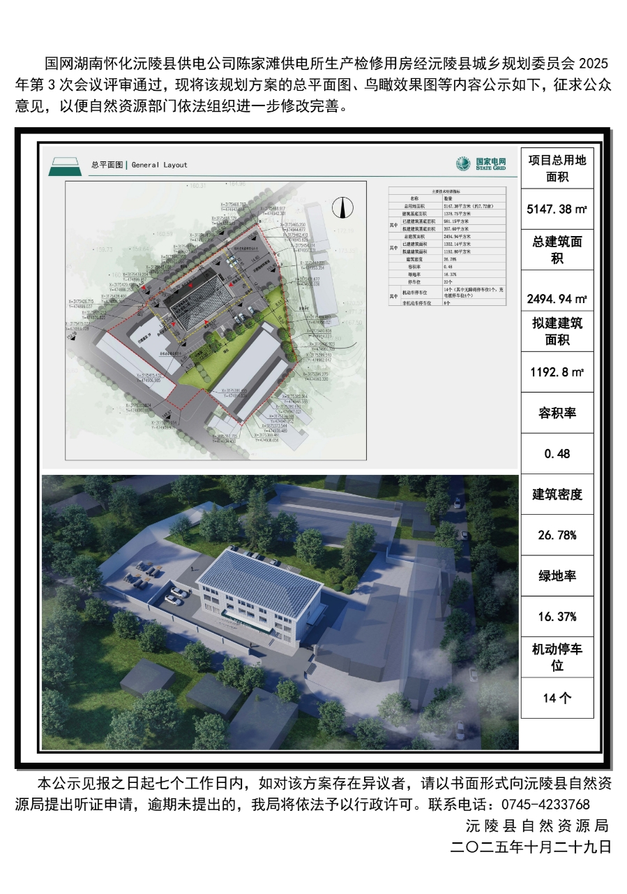 国网湖南怀化沅陵县供电公司陈家滩供电所生产检修规划设计方案批前公示