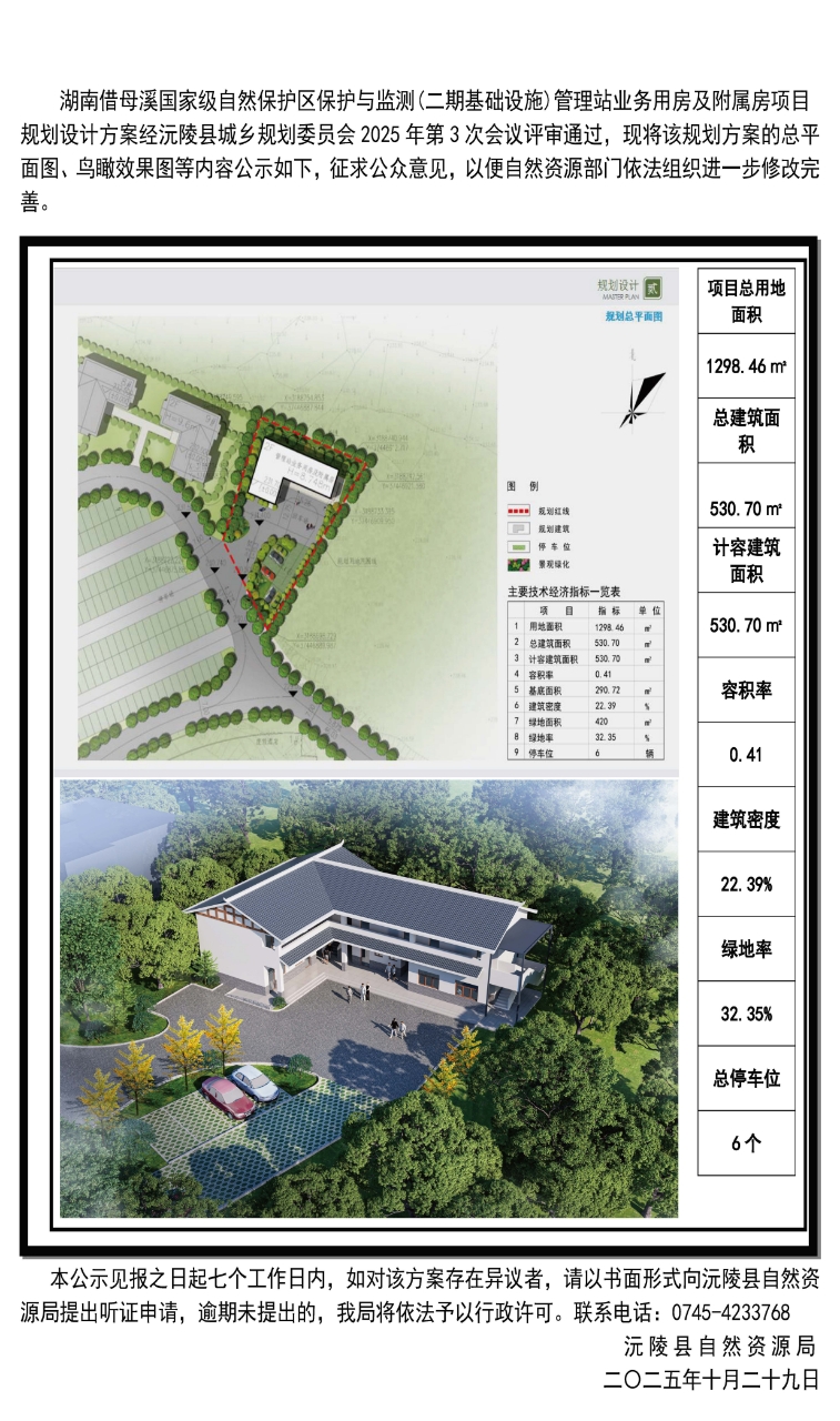 湖南借母溪国家级自然保护区与监测(二期基础设施)管理站规划设计方案批前公示
