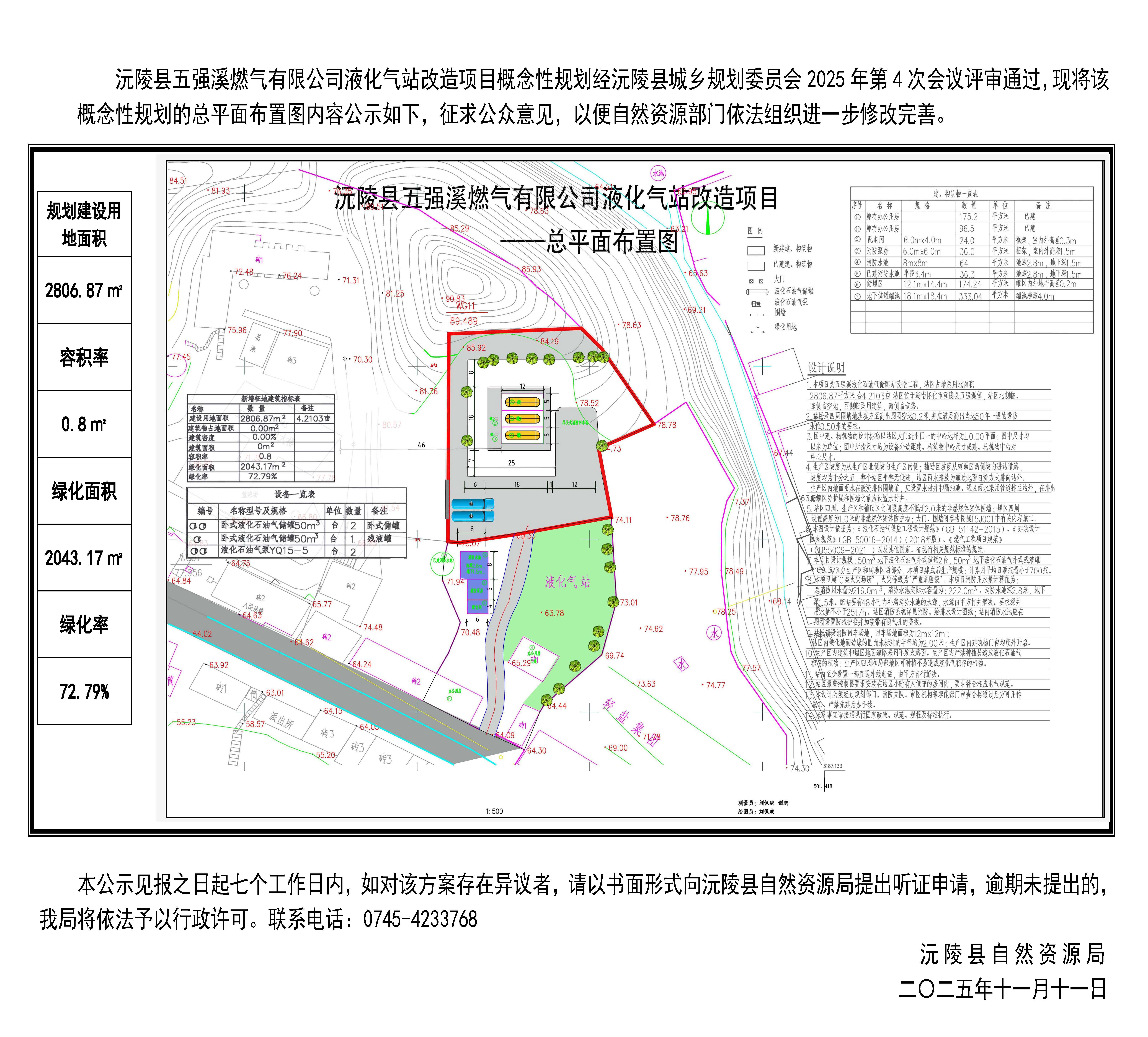沅陵县五强溪燃气有限公司液化气站改造项目概念性规划-批前公示