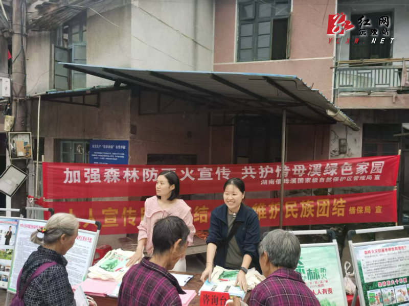 9月29日,湖南借母溪国家级自然保护区管理局利用赶集日,在借母溪乡军大坪村农贸市场开展森林防火、科普宣教和民族团结宣传活动。