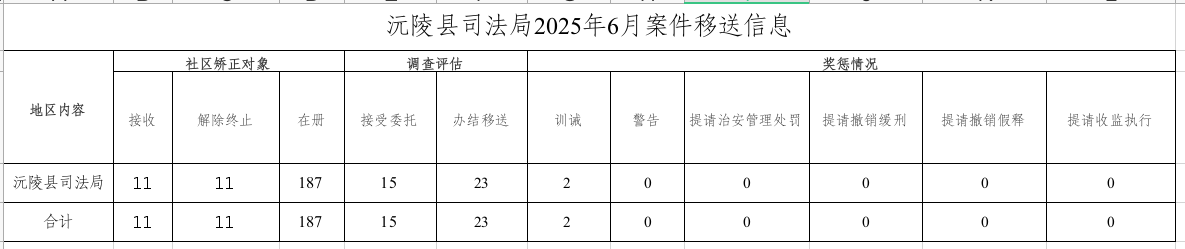 沅陵县司法局2025年6月案件移送信息