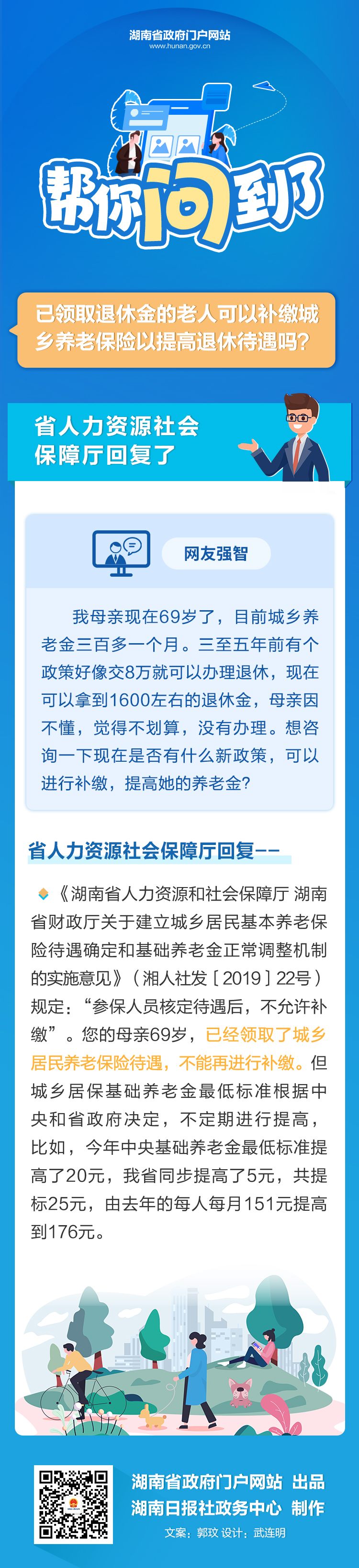 【社会保险】已领取退休金的老人可以补缴城乡养老保险以提高退休待遇吗?帮你问到了!