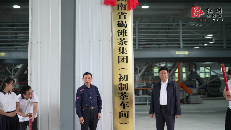 在揭牌环节,湖南潇湘茶业有限公司董事长陈德湖与辰发控股集团有限公司董事长沈年军共同为“大宗茶合作加工中心初制车间”揭牌;湖南湘茶集团总经理王树波与辰发控股集团有限公司总经理全科共同为“大宗茶合作加工中心精制车间”揭牌。
