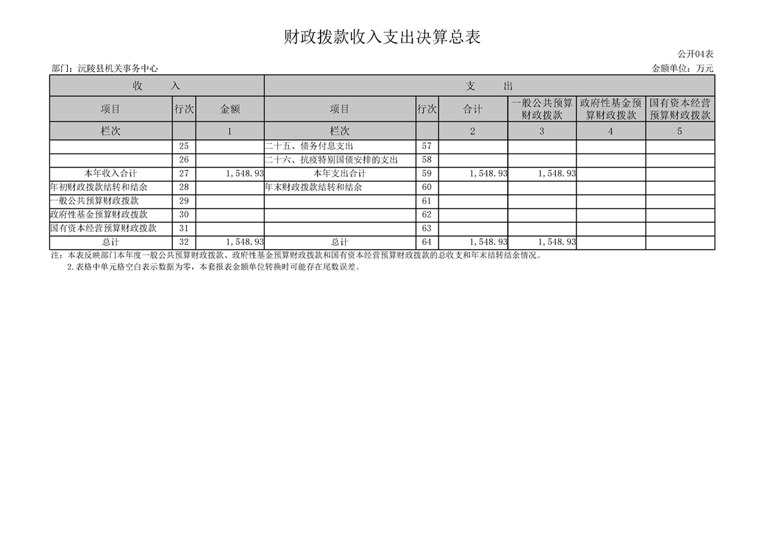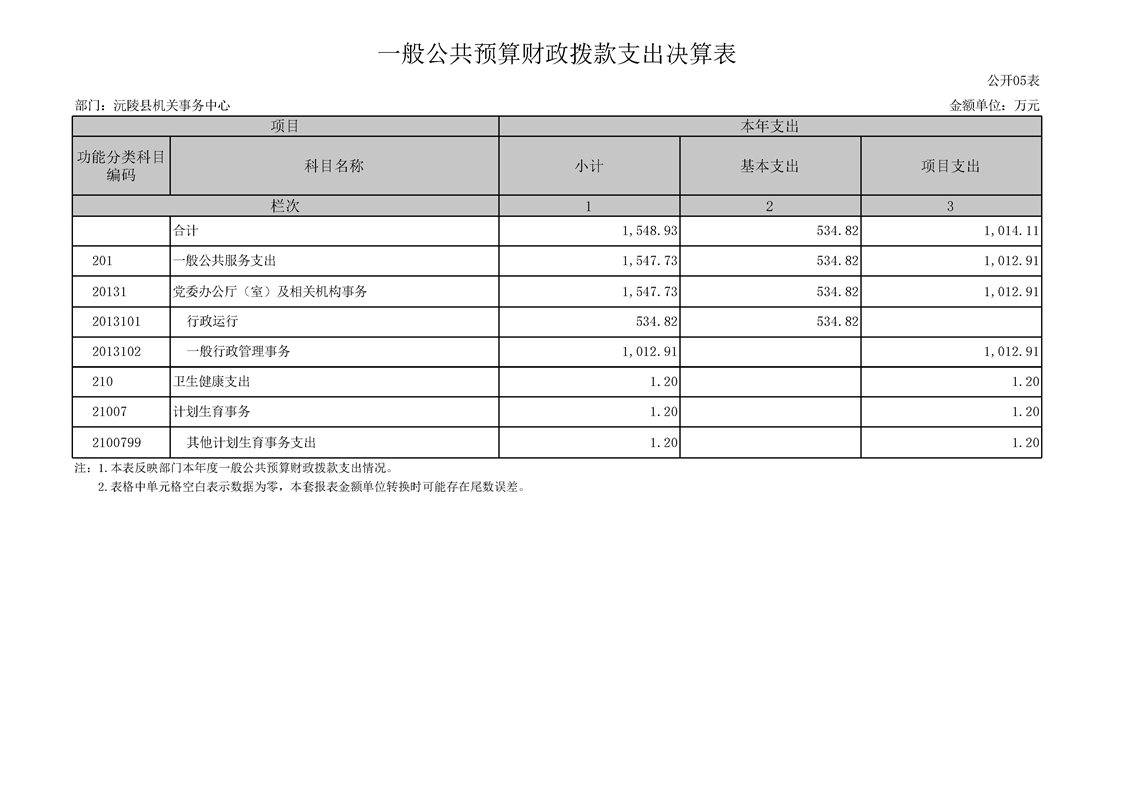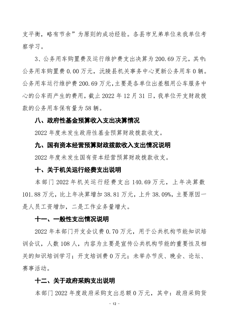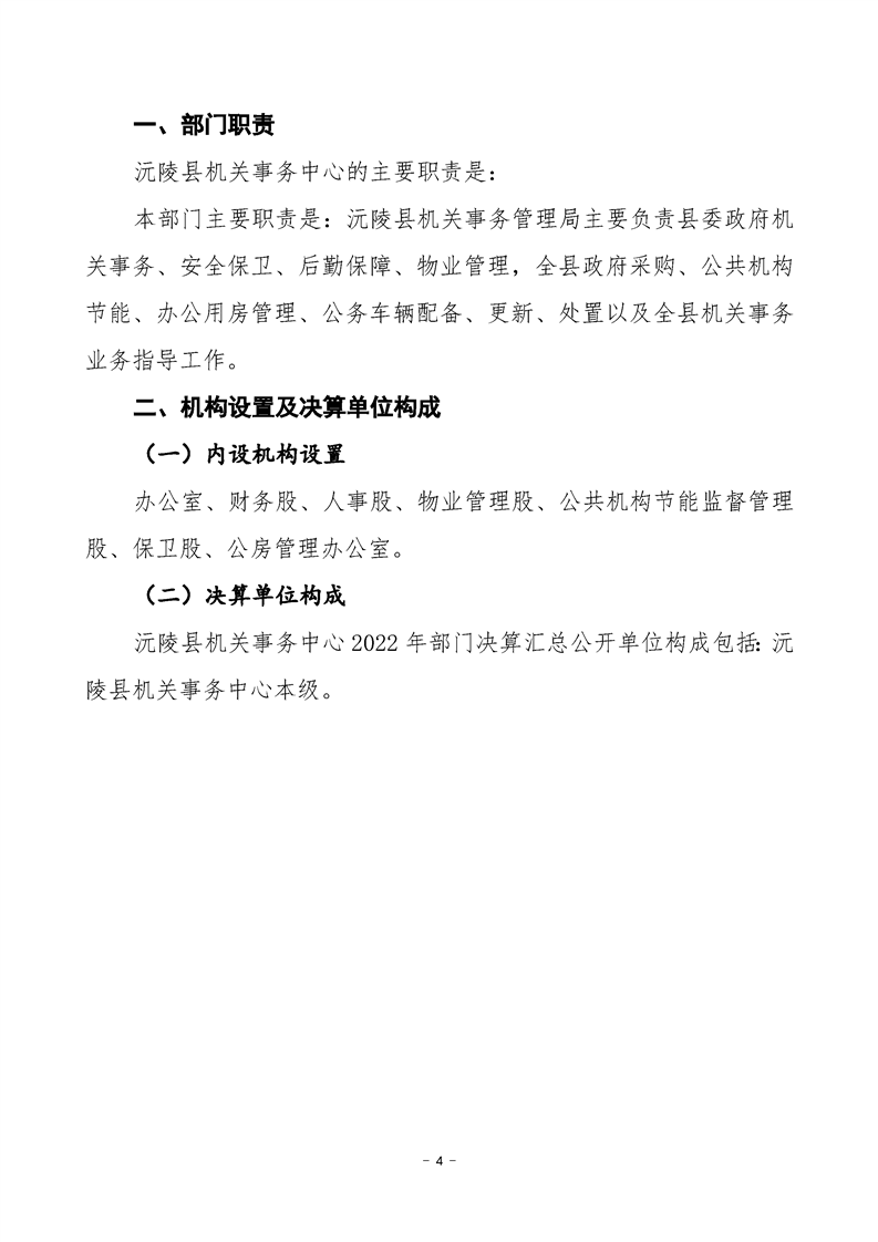 2022年度沅陵县机关事务中心部门决算