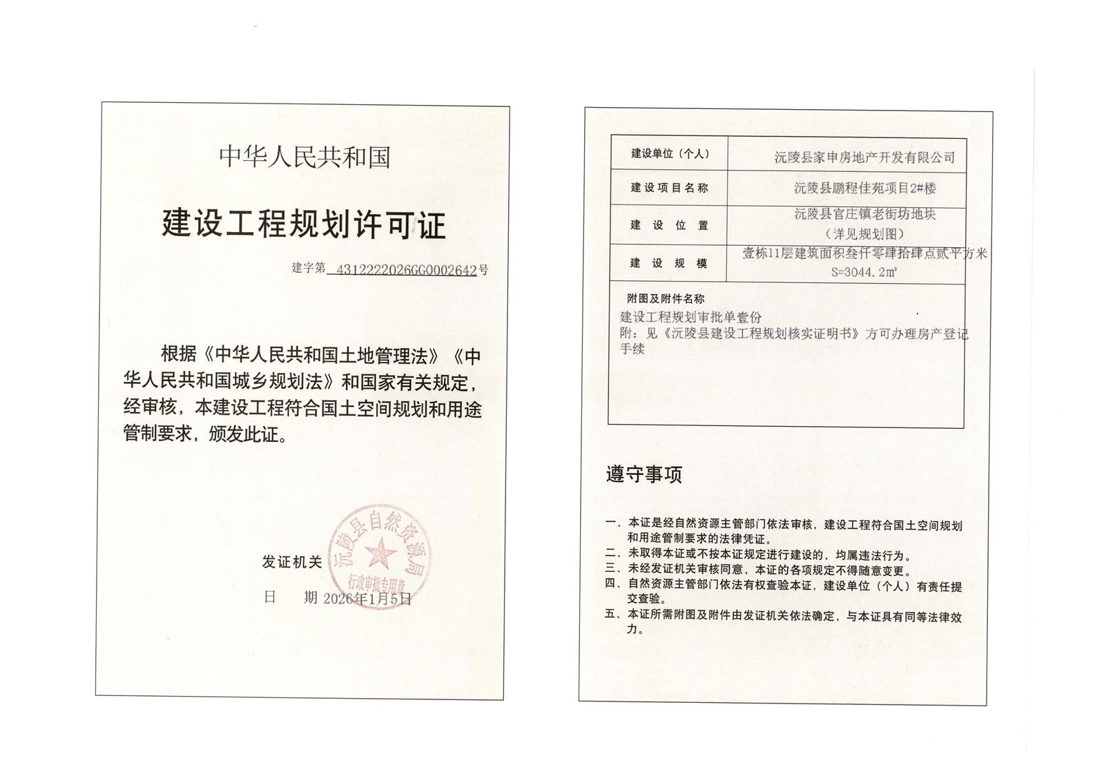 官庄镇鹏程佳苑2#楼建设工程规划许可证公示