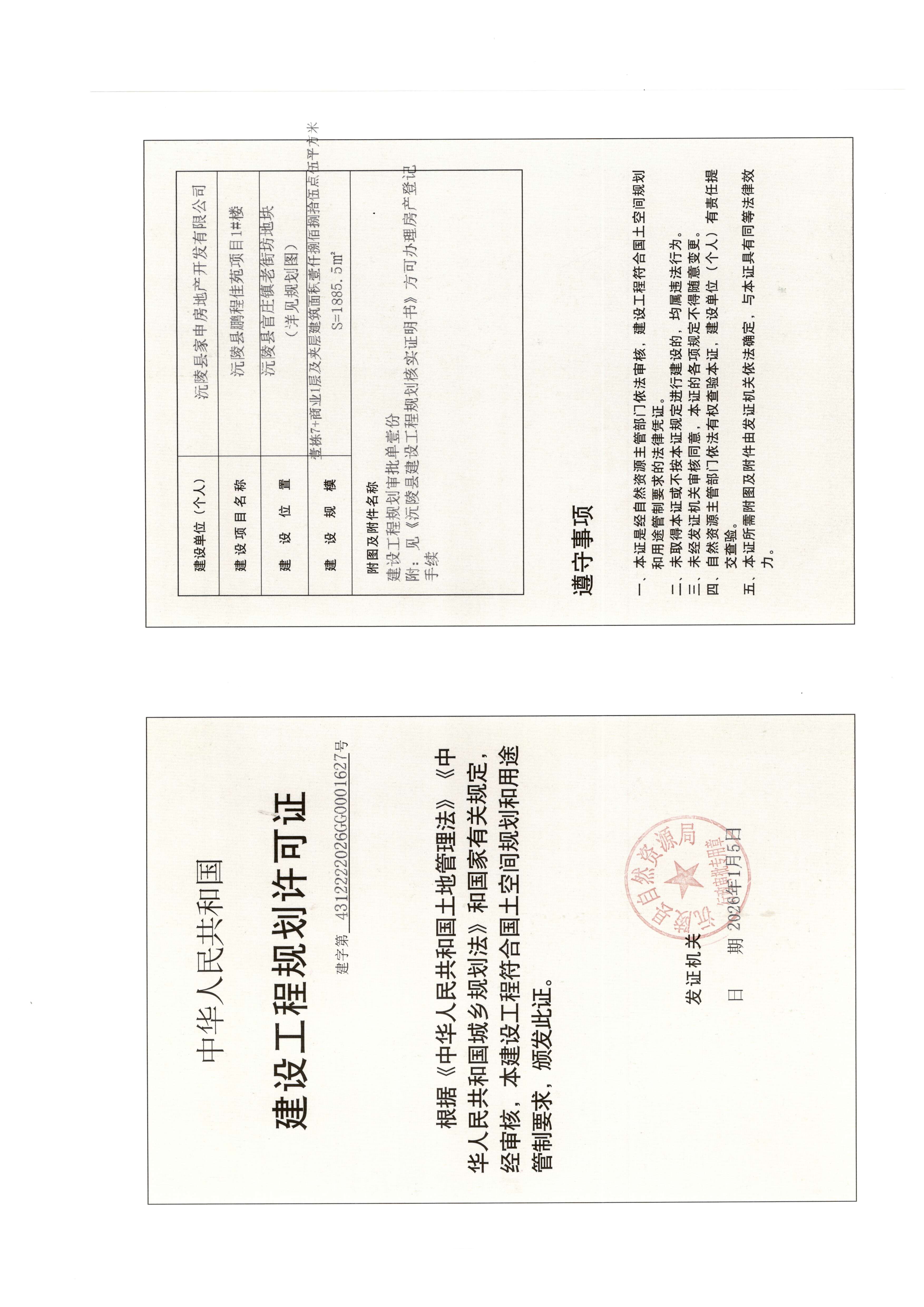 官庄镇鹏程佳苑1#楼建设工程规划许可证公示