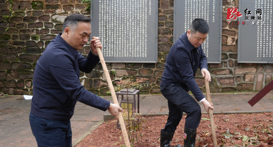 上午9时,刘向阳、陈星等一行抵达植树现场,迅速投入到植树劳动中。挥锹铲土、扶苗定植、填土压实、提水浇灌,大家分工协作、配合默契,每一道工序都认真细致、规范有序,经过一番辛勤劳作,一株株金丝楠木等新苗错落栽种、迎风挺立,与虎溪书院古朴的建筑相映成趣,为这片底蕴深厚的人文胜地增添了盎然生机与清新绿意。