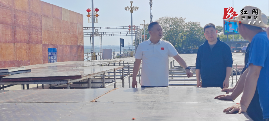 在龙舟广场,陈星查看了2026湖南龙舟超级联赛沅陵站赛事筹备进展及现场设施搭建情况,仔细询问工作人员施工进度、设施搭建标准及后续筹备安排,并反复叮嘱相关负责人,要始终把施工安全放在首位,严格按照规范流程作业,全面排查设施结构、用电安全等各类隐患,确保设施稳固、安全可控。同时,要在保障安全和质量的前提下,加快设施搭建进度,细化赛事筹备各项举措,全力为“龙超”赛事顺利举办筑牢基础。