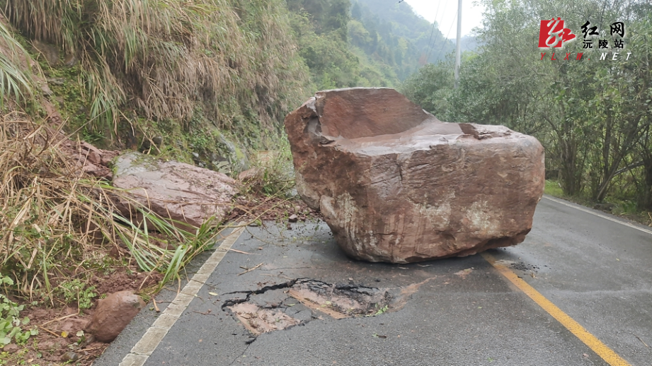 4月5日上午11时左右,沅陵县公路建设养护中心工作人员巡查发现境内G241国道张沅线三坝滩路段(K2237+05米处)边坡一块巨石滑落,巨石横堵路面占据半幅路面,道路通行存在严重安全隐患。
