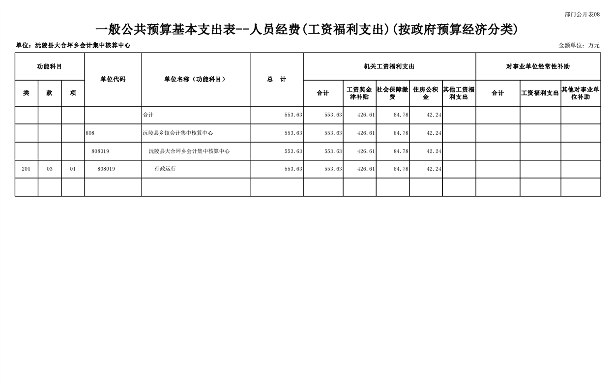 2023年沅陵县大合坪乡会计集中核算中心预算公开